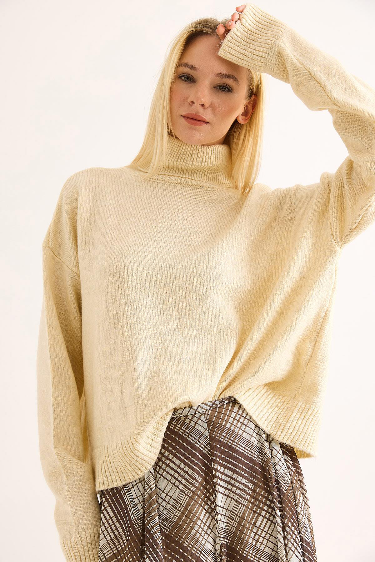 Kadın Oversize Boğazlı Kazak Bej (500766KZKXBEJ)
