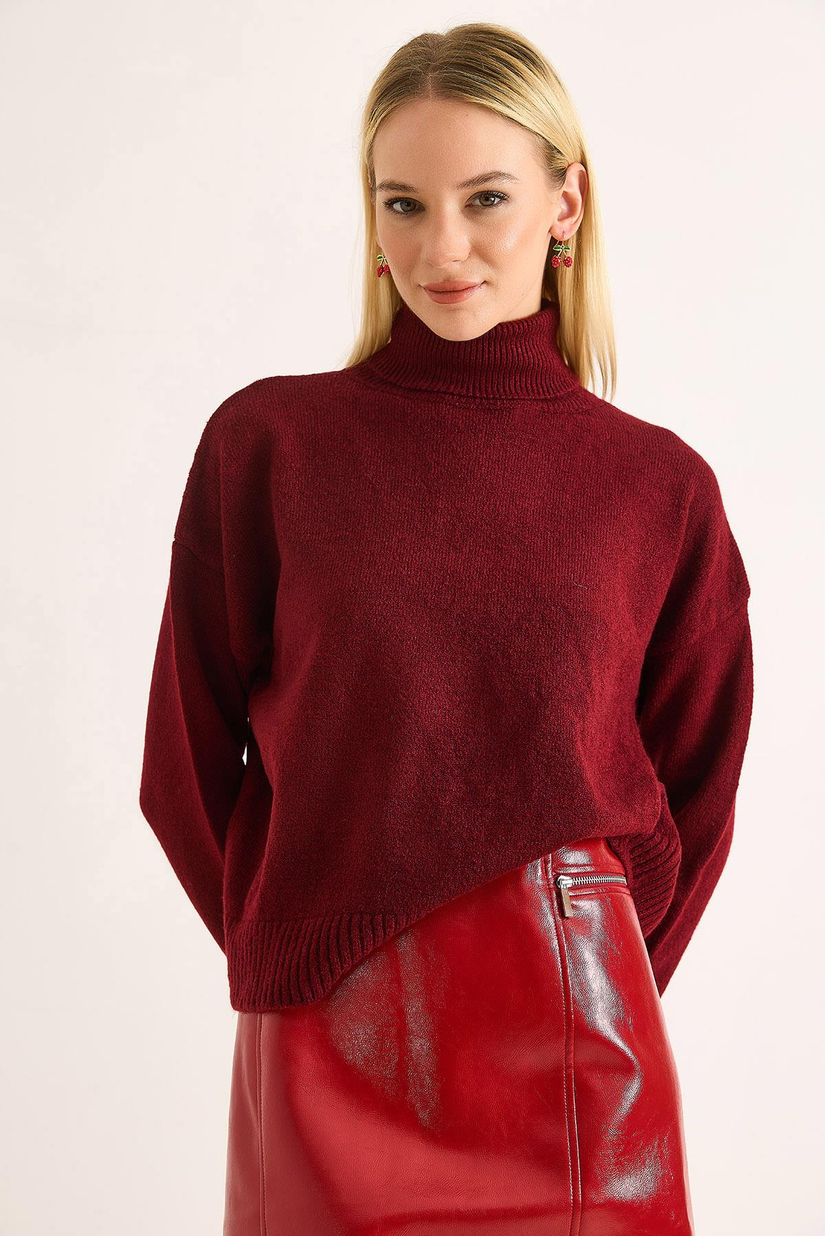 Kadın Oversize Boğazlı Kazak Bordo (500766KZKXBRD)