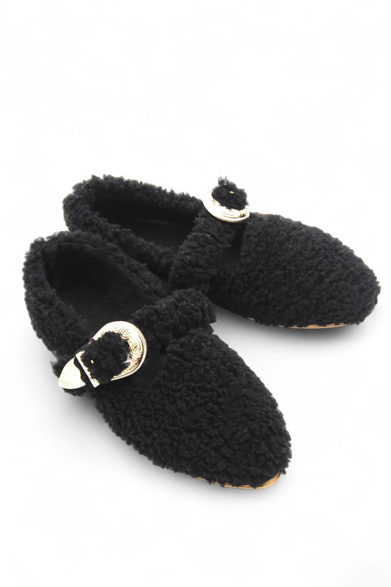 Kadın Peluş Tokalı Siyah Ev Ayakkabısı