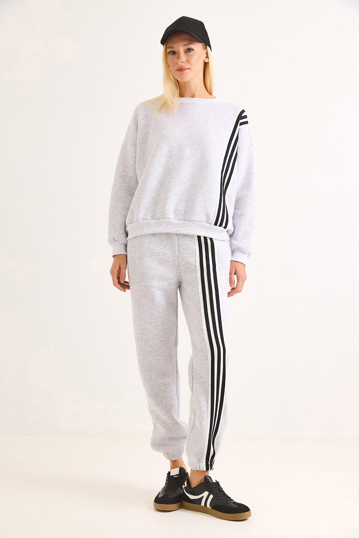 Kadın Şerit Nakışlı Şardonlu Üç İplik Eşofman Takımı (500756EŞFXGRİ)