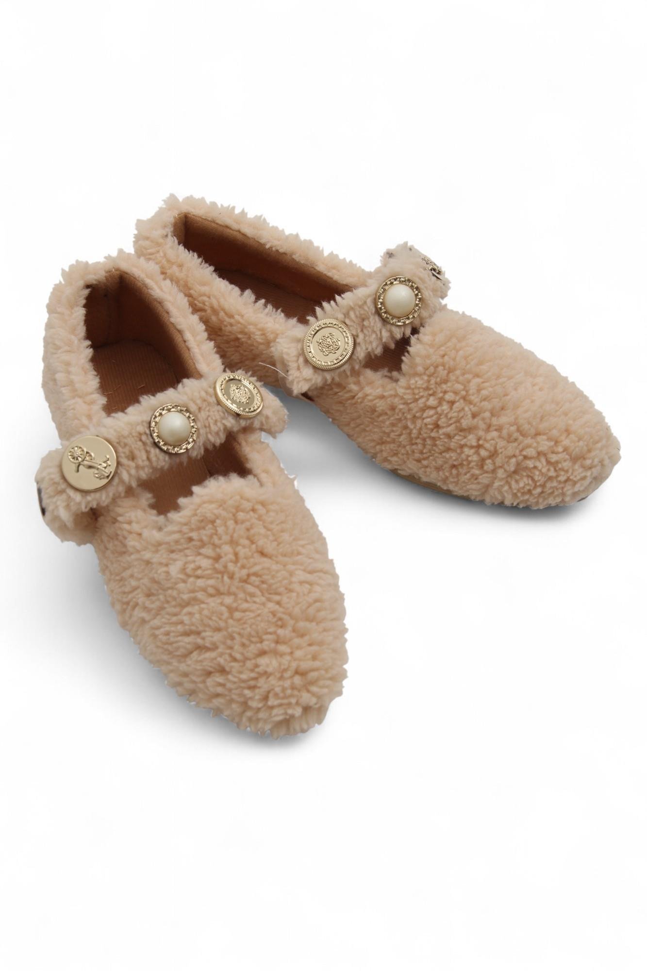 Kadın Tek Bant Aksesuarlı Peluş Vizon Ev Ayakkabısı