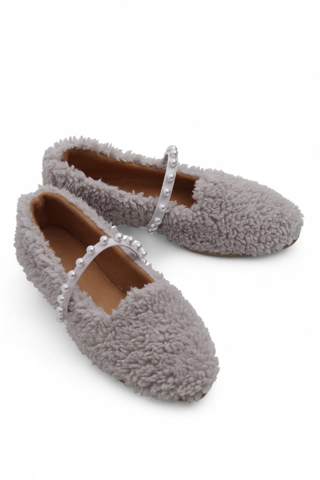 Kadın Tek Bant Peluş Gri Ev Ayakkabısı (251384AYKXGRİ)