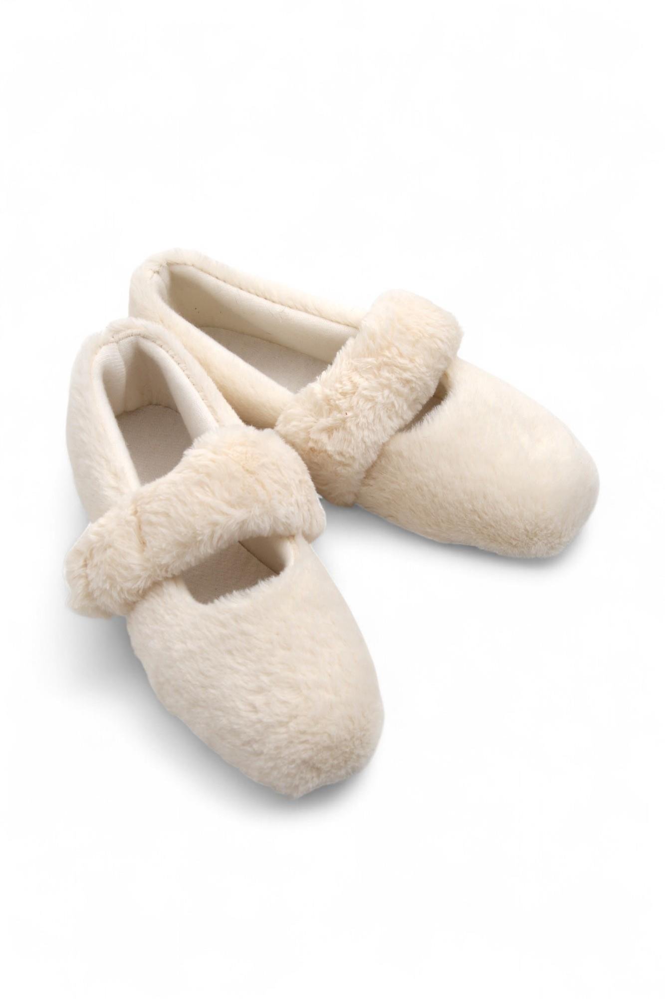 Kadın Tek Bant Peluş Kışlık Ekru Ev Ayakkabısı