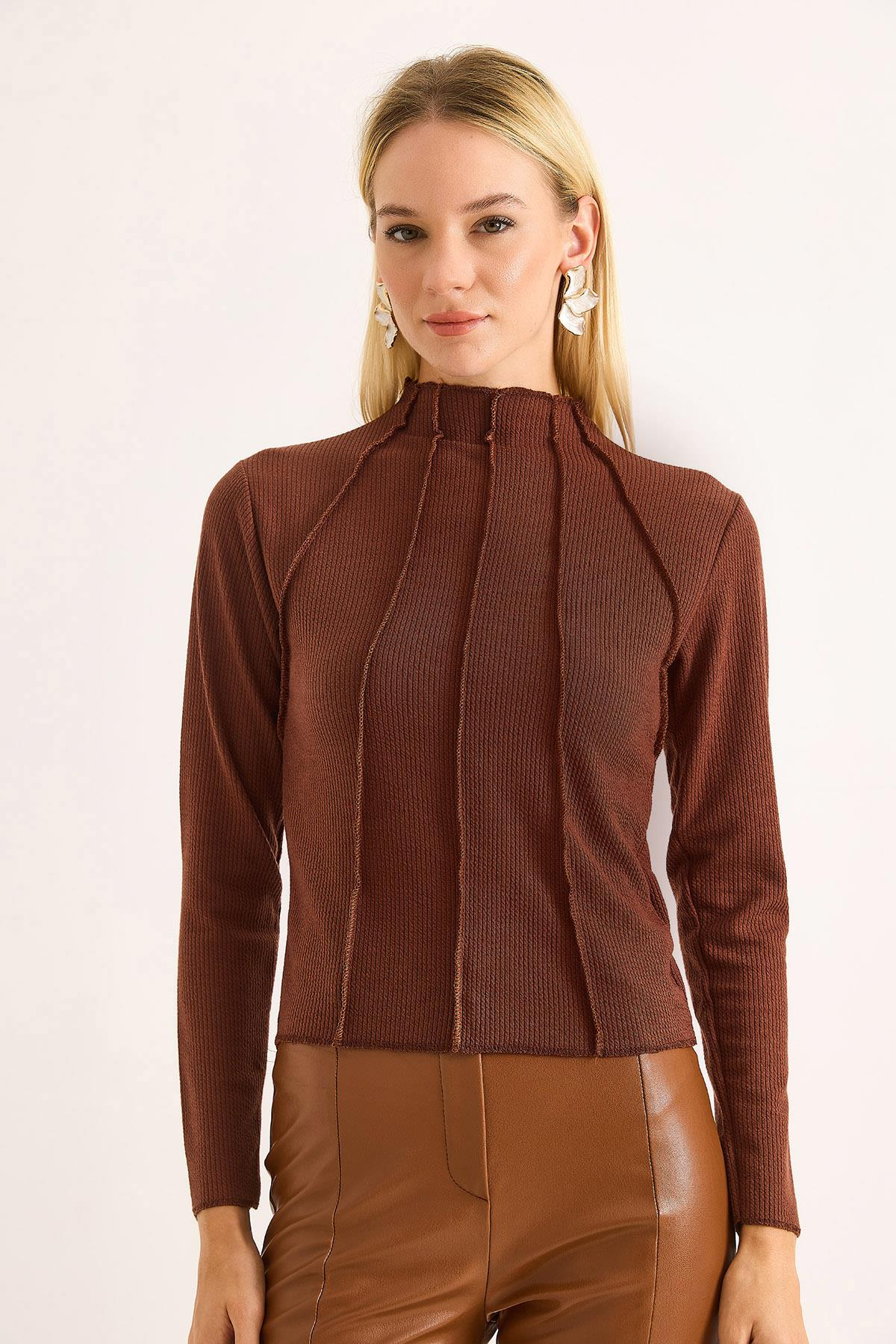 Kadın Ters Dikiş Kısa Bluz Kahverengi (500755BLZXKHV)