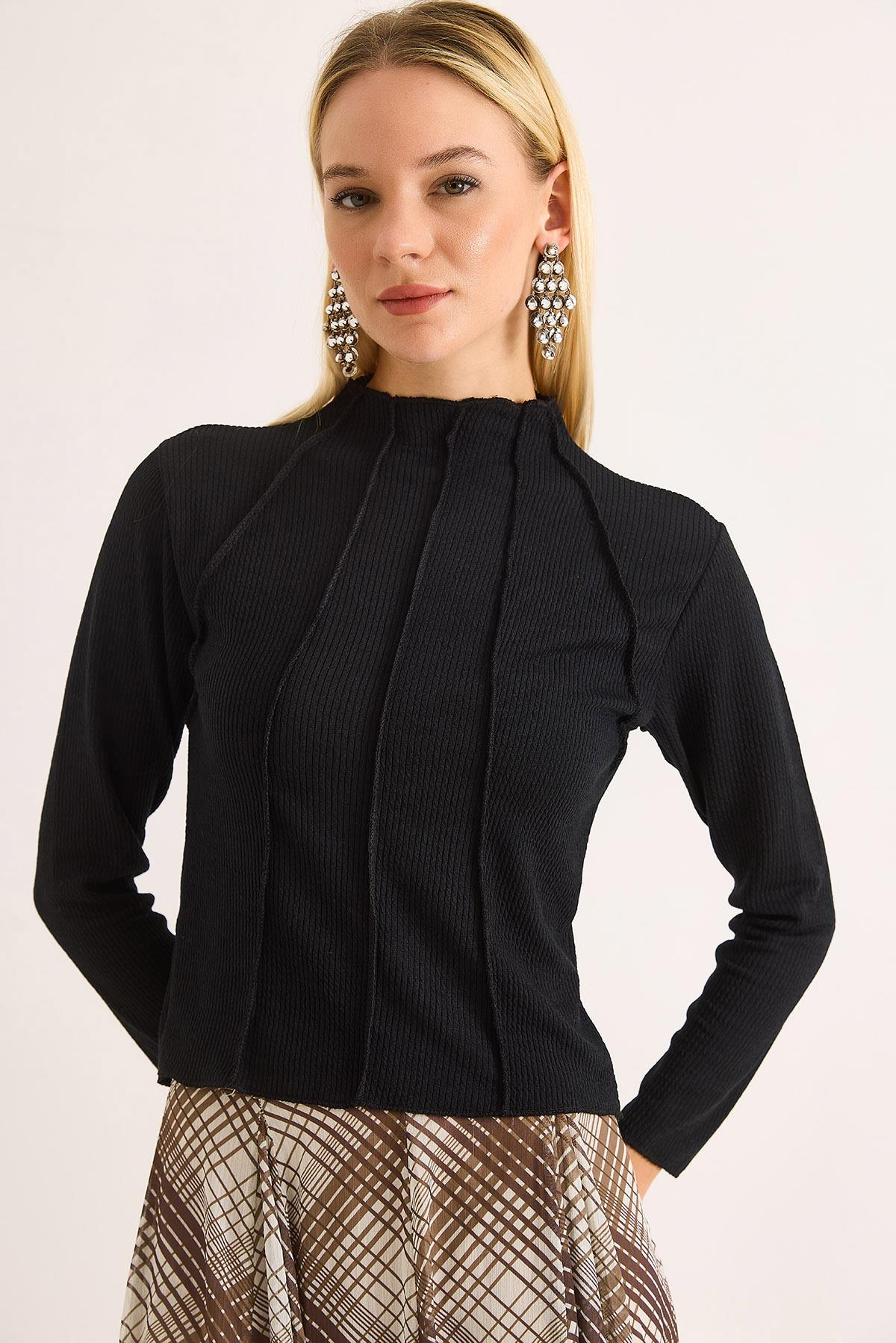 Kadın Ters Dikiş Kısa Bluz Siyah (500755BLZXSYH)