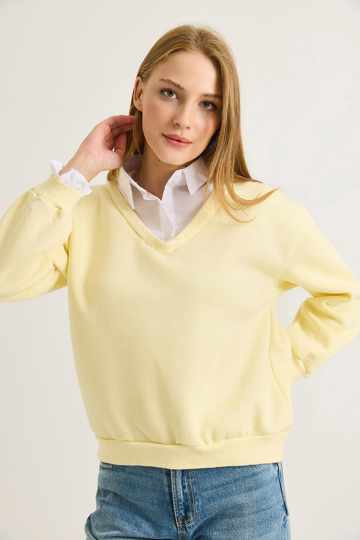 Kadın Üç İplik Şardonlu Gömlek Yaka Swet Sarı (500744SWTXSRI)
