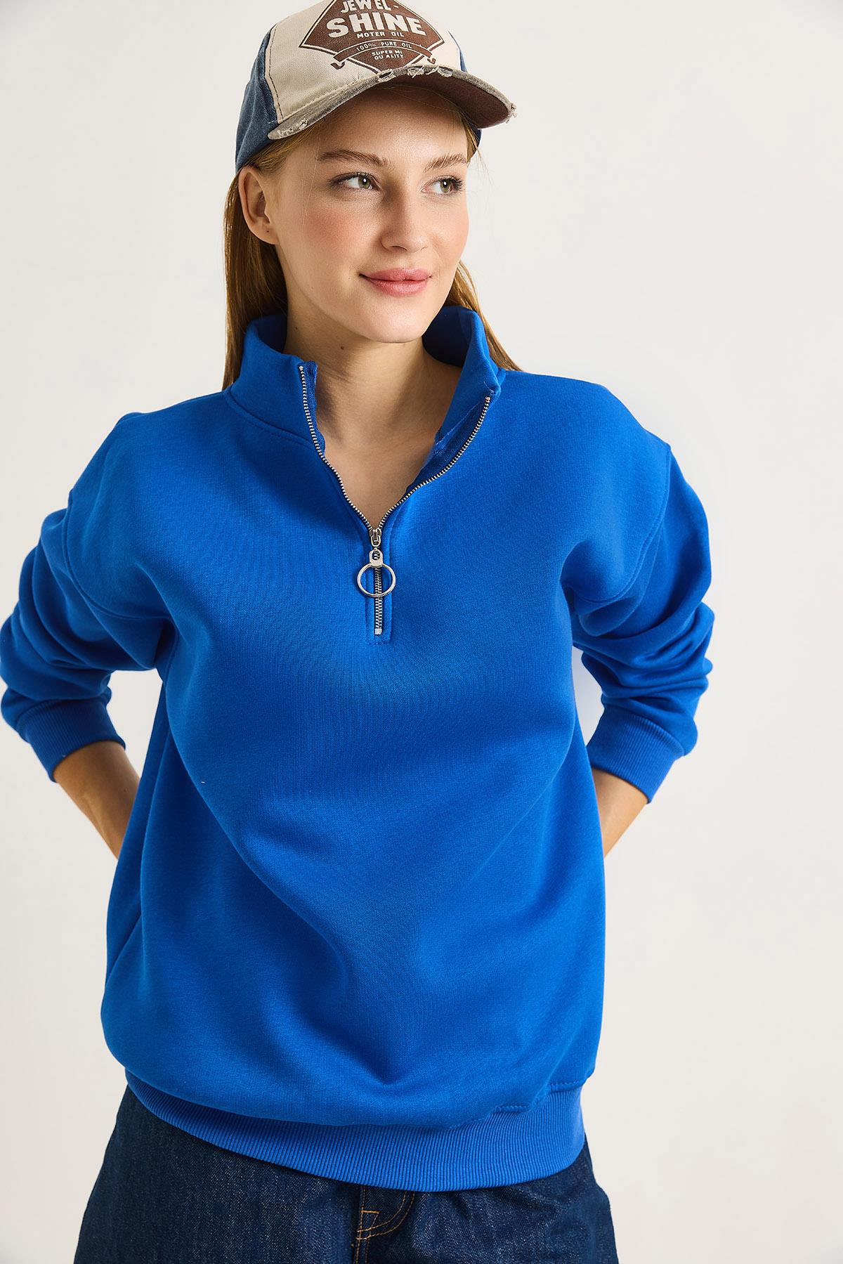 Kadın Yaka Fermuarlı 2 İplik Sweatshirt Saks (251311SWTXSKS)