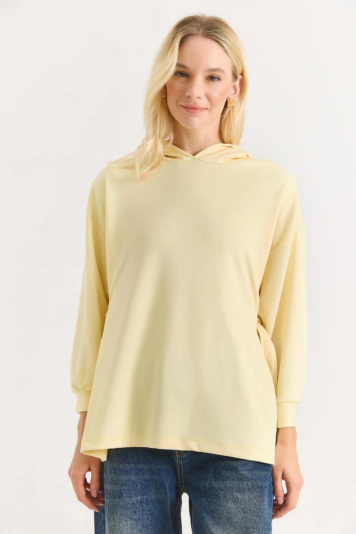 Kadın Yanları Bağlamalı Oversize Modal Tunik Sarı (500796TNKXSRI)