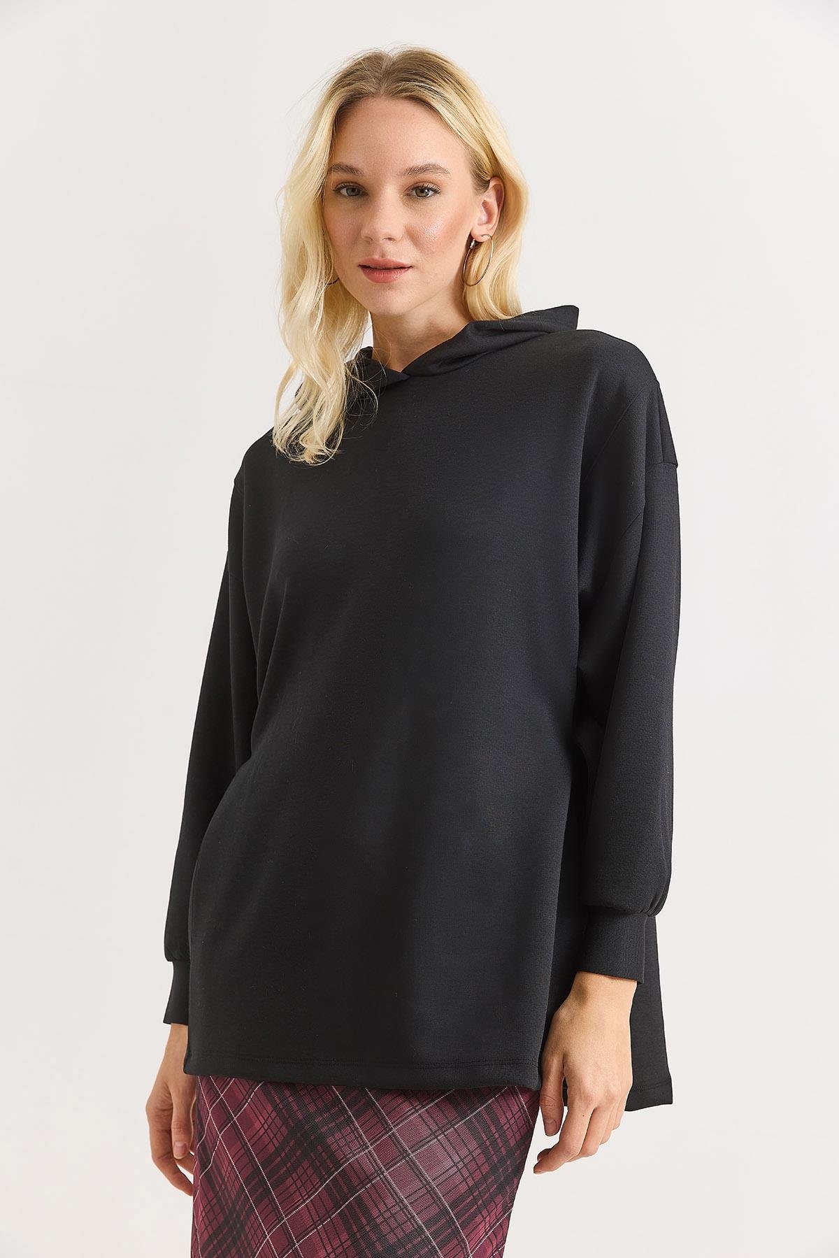 Kadın Yanları Bağlamalı Oversize Modal Tunik Siyah (500796TNKXSYH)