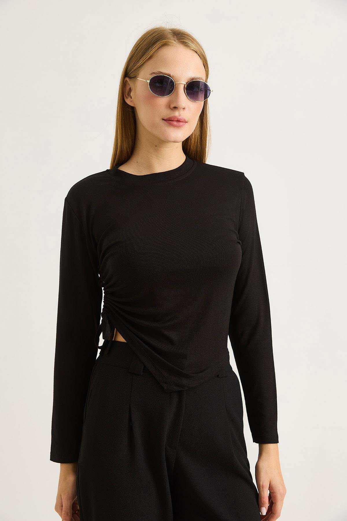 Kadın Yanları Büzgülü Asimetrik Bluz Siyah