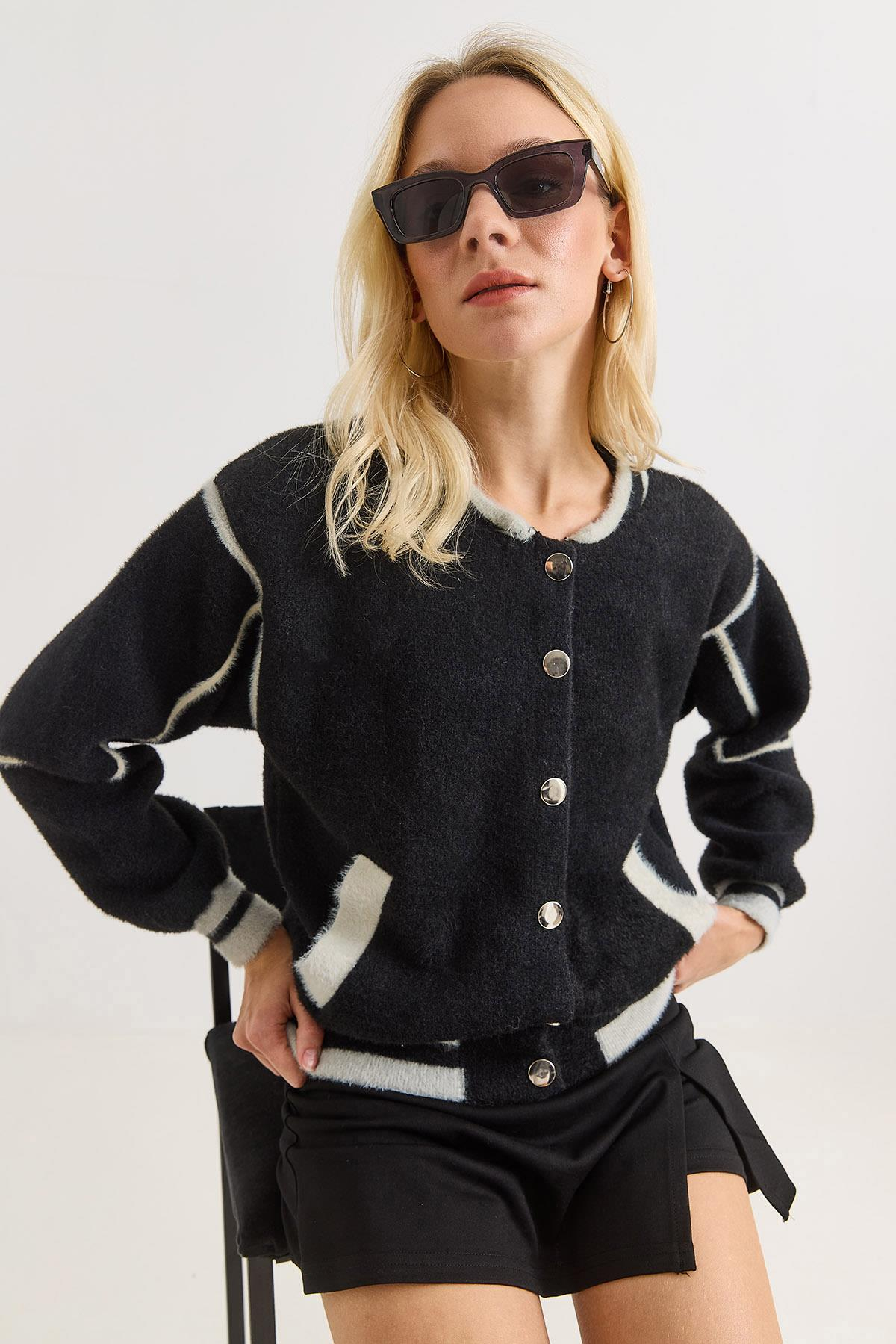 Kadın Yumuşak Kolej Hırka Siyah