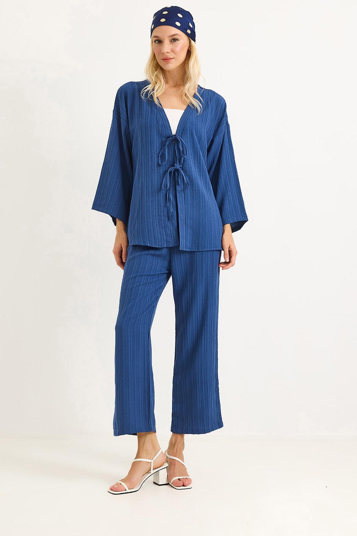 Kimonolu Pantalon Krınkıl Takım Mavi (500700TKMXMVİ)