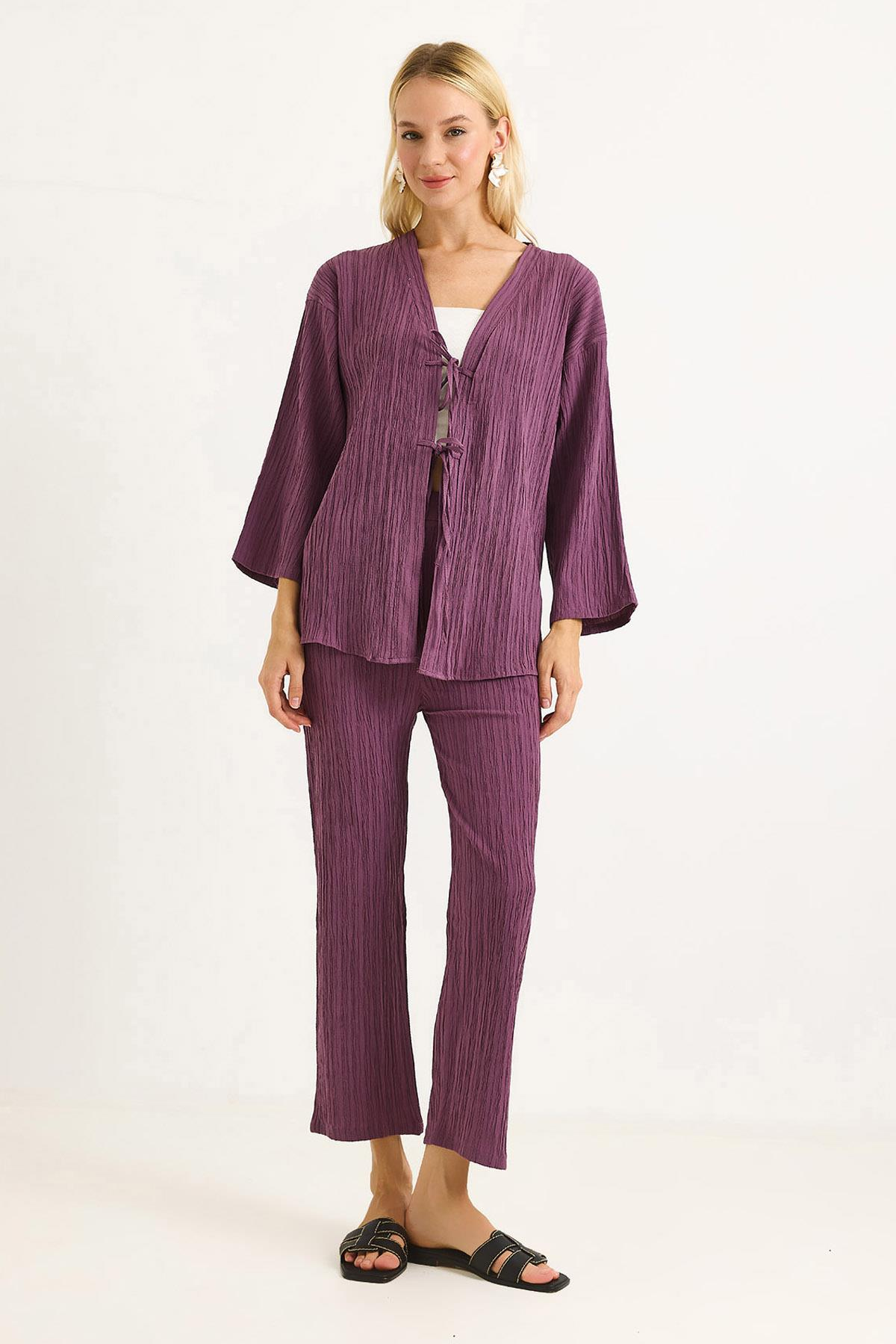 Kimonolu Pantalon Krınkıl Takım Mürdüm (500700TKMXMRD)