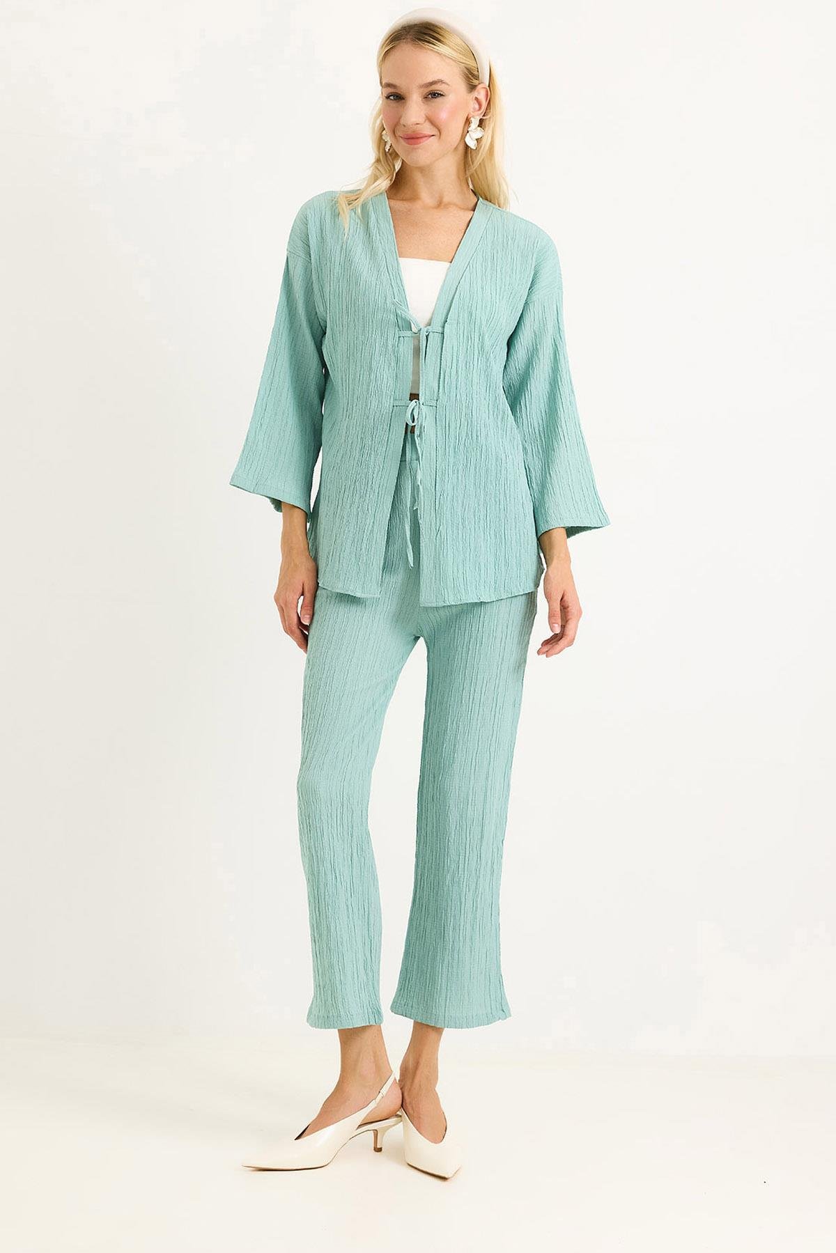 Kimonolu Pantalon Krınkıl Takım Yeşil (500700TKMXYŞL)