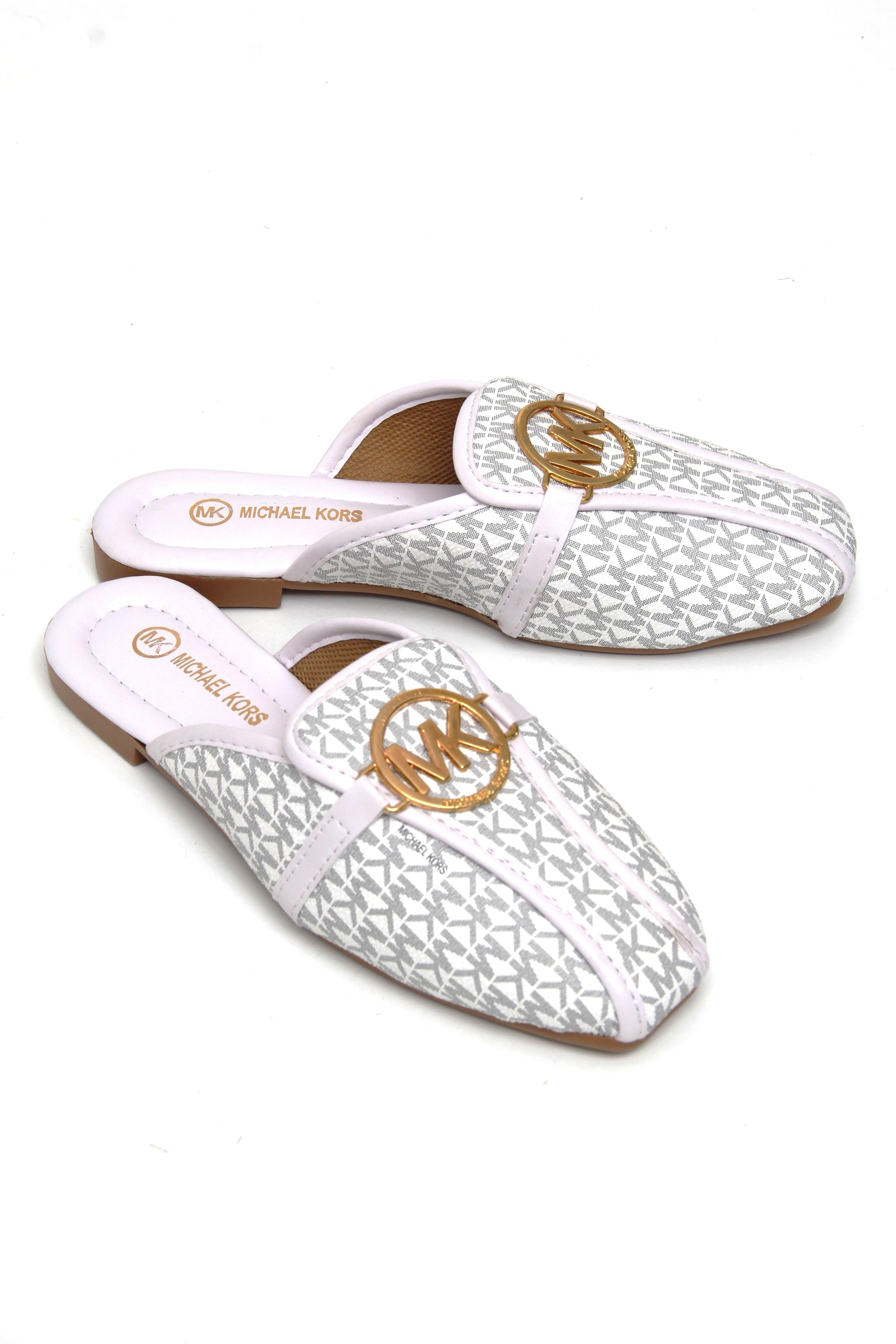 MK Aksesuarlı Şık Kadın Terlik Beyaz