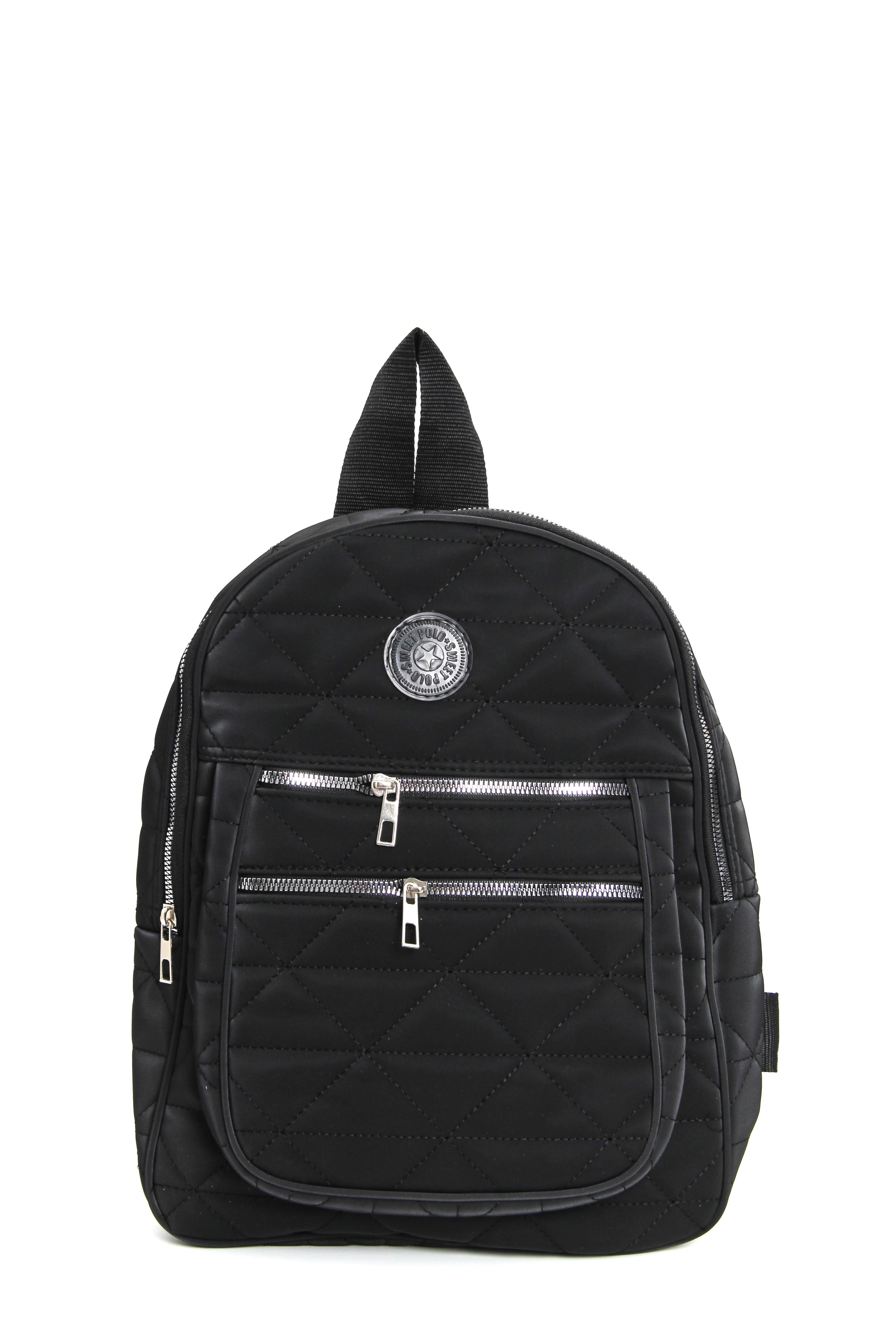 Ön Cep Detaylı Siyah Kapitone Sırt Çantası (500527ÇNTXSYH)