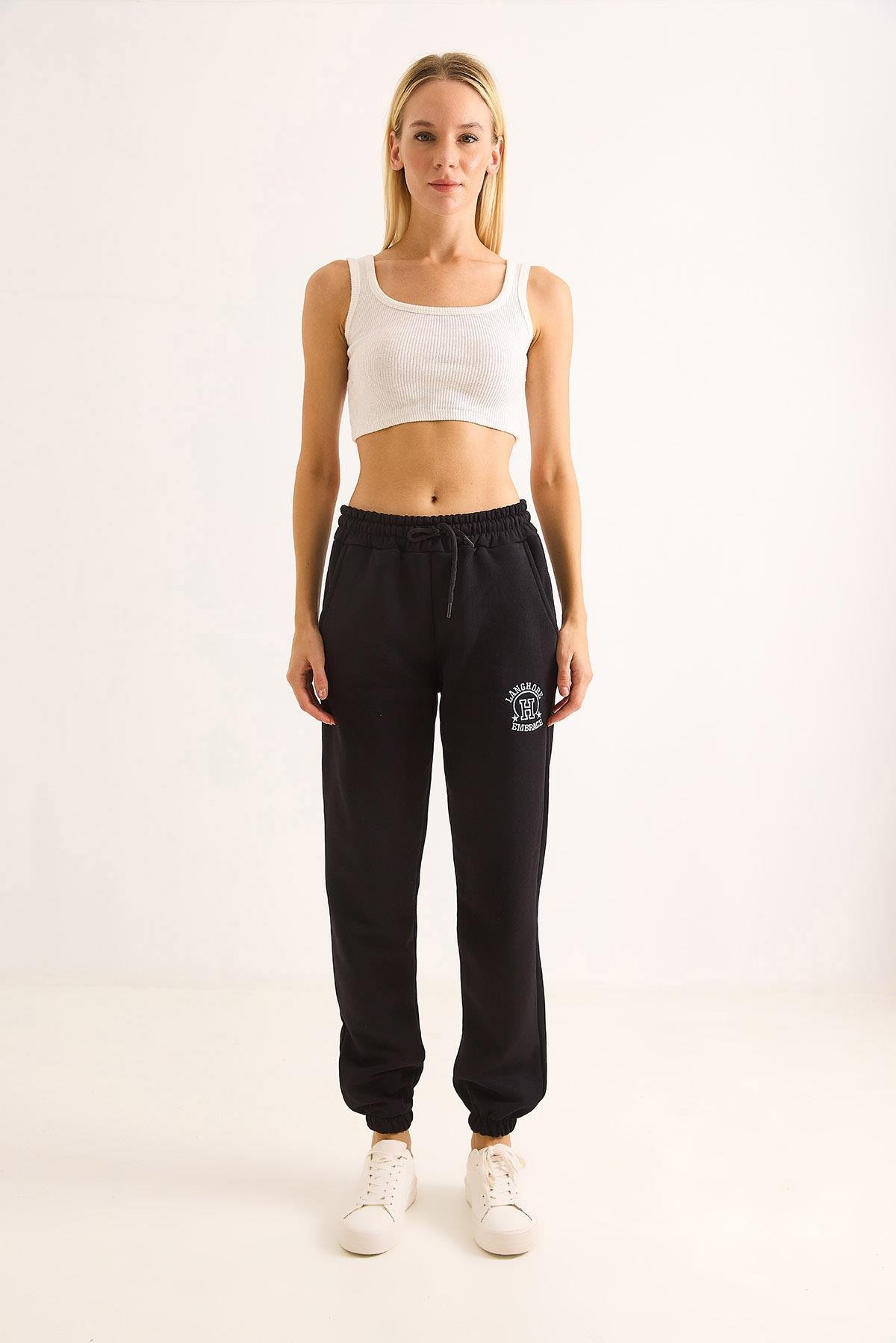 Şardonlu 3 iplik Nakışlı Eşofman Siyah (500726EŞFXSYH)