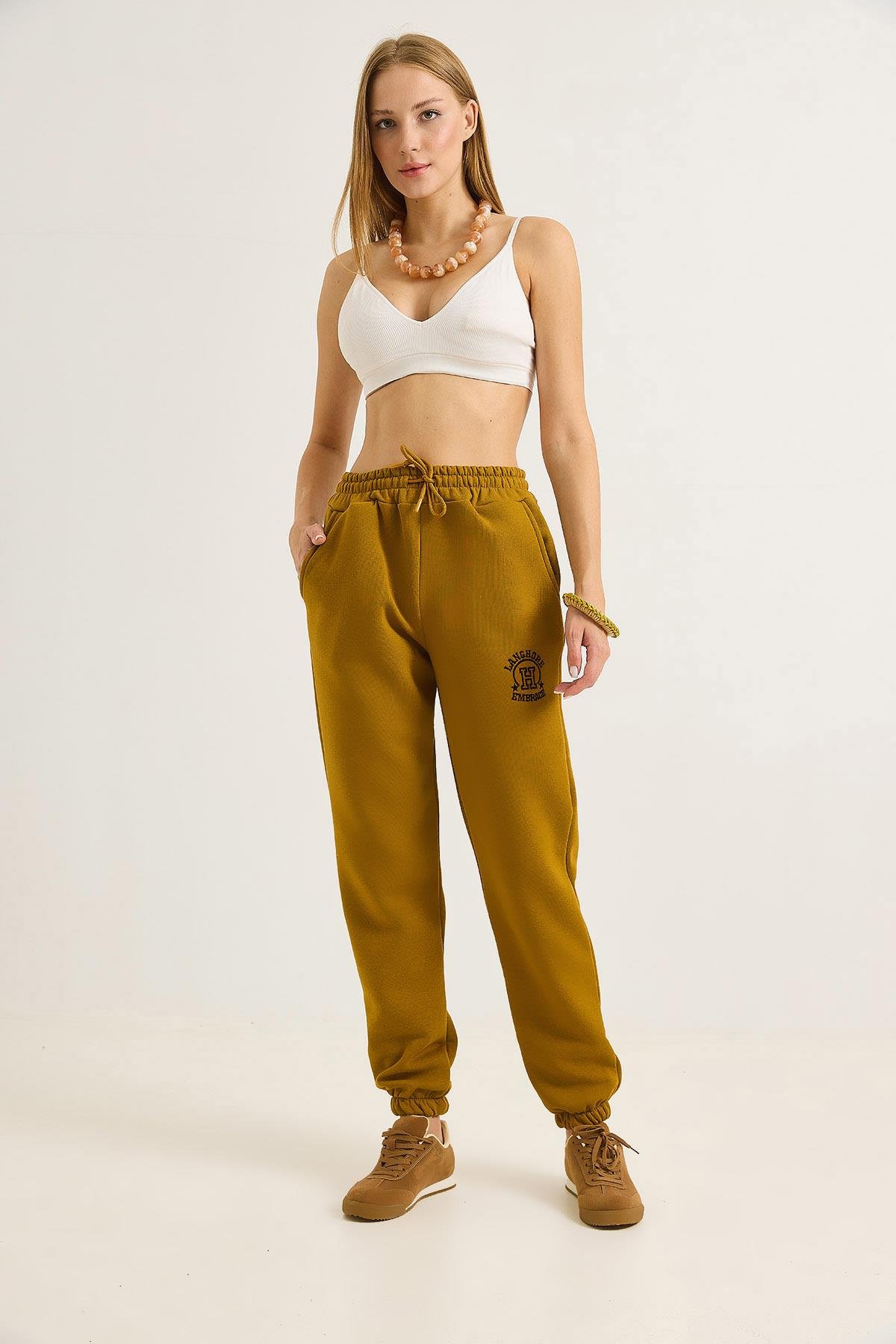 Şardonlu 3 iplik Nakışlı Eşofman Zeytin Kadın (500726EŞFXZYTN)