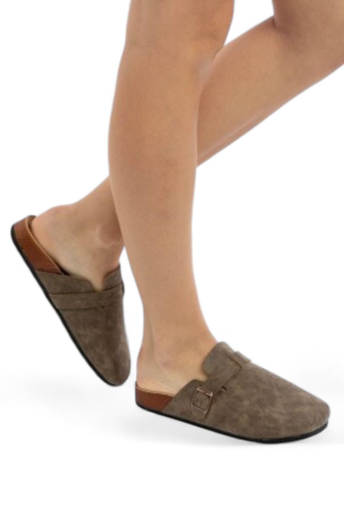 Süet Görünümlü Önü Kapalı Terlik Toprak