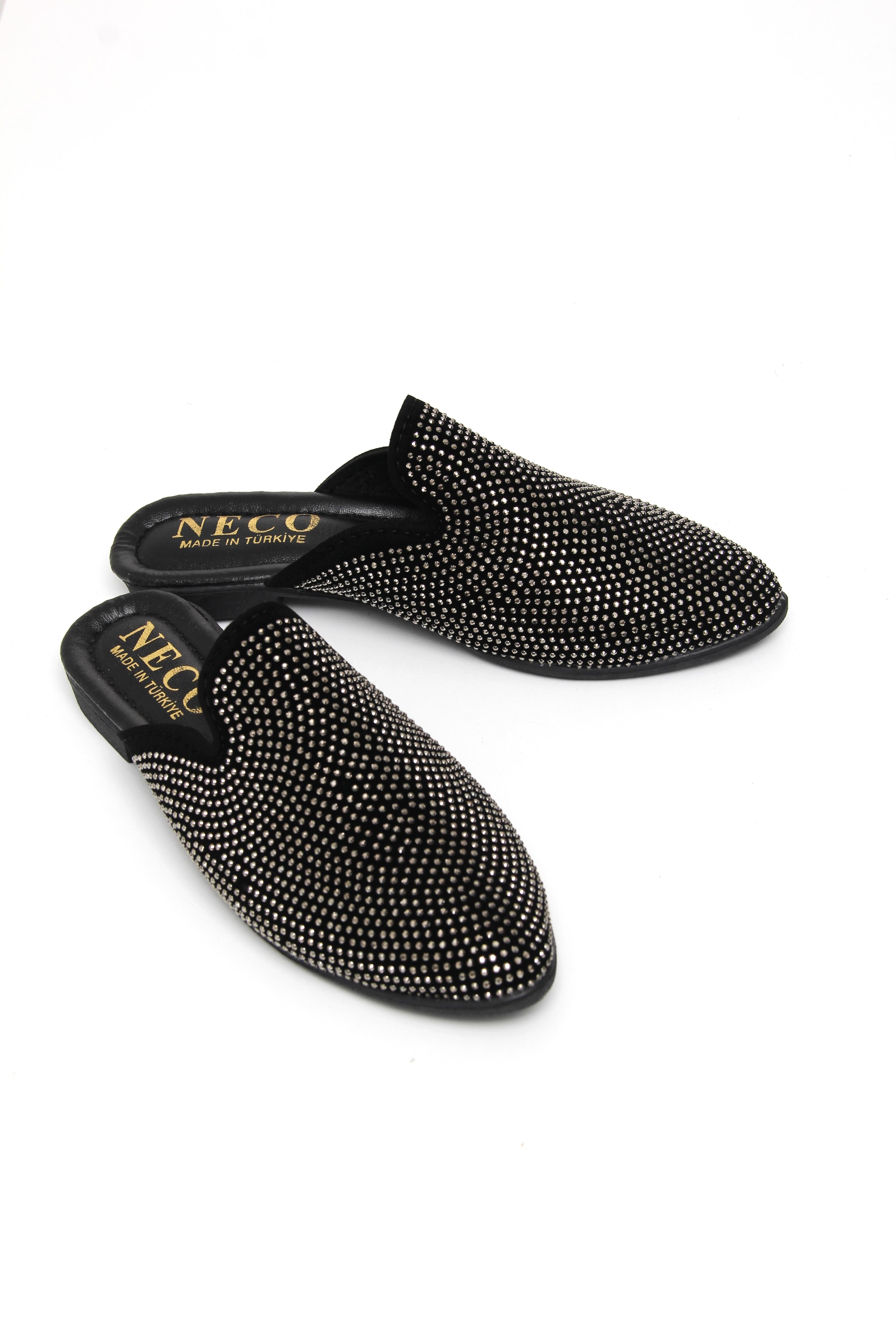 Taşlı Desen Kaplama Sivri Burnun Terlik Siyah