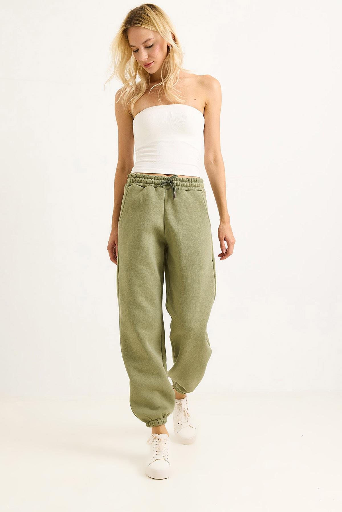 Üç İplik Paçası Lastikli Eşofman Alt Haki (500711EŞFXHKİ)