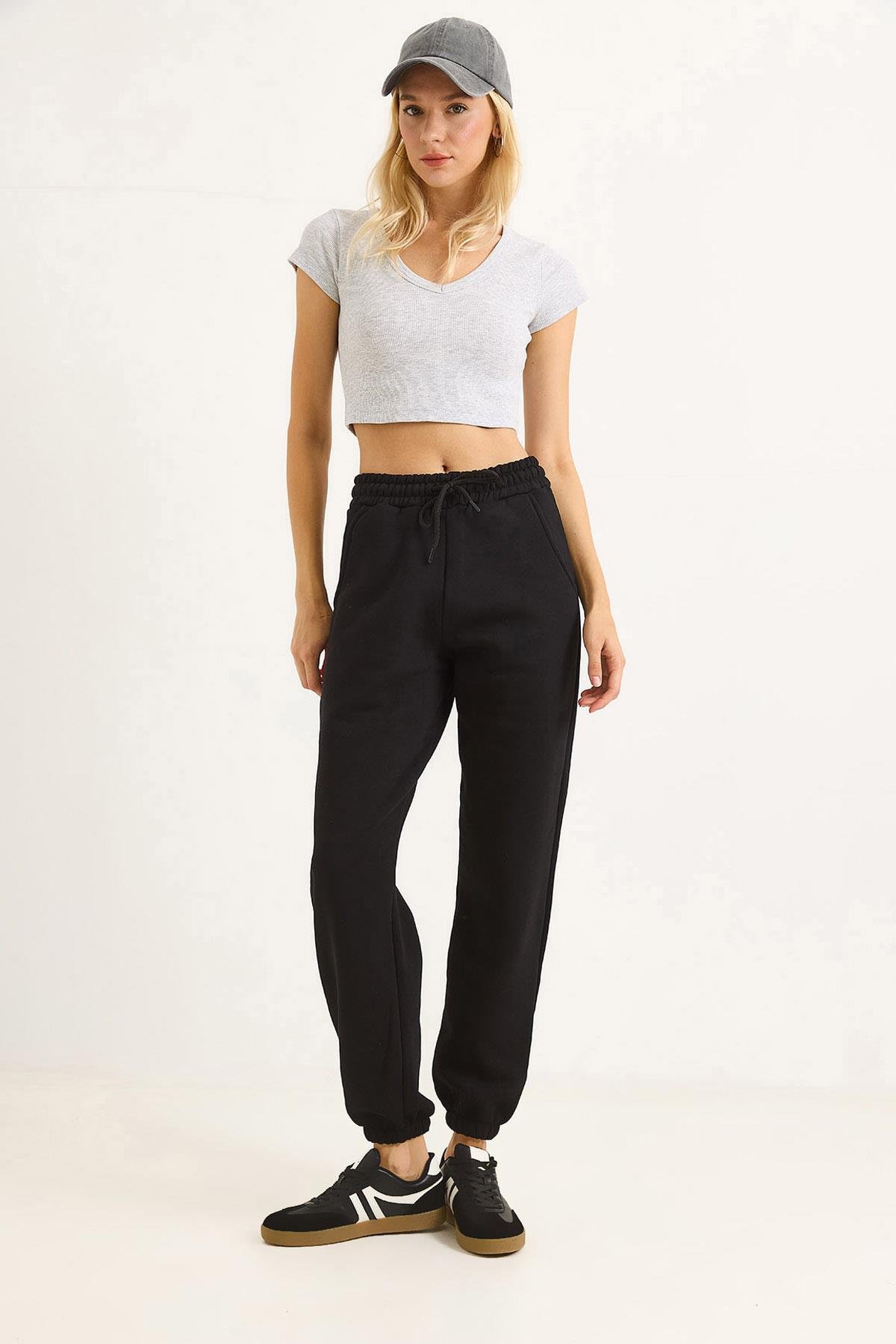 Üç İplik Paçası Lastikli  Eşofman Alt Siyah