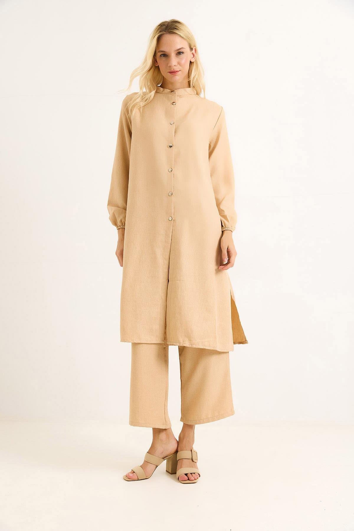 Uzun Tunikli Düğmeli Şık Aeorobin Takım Vizon (251167TKMXVZN)