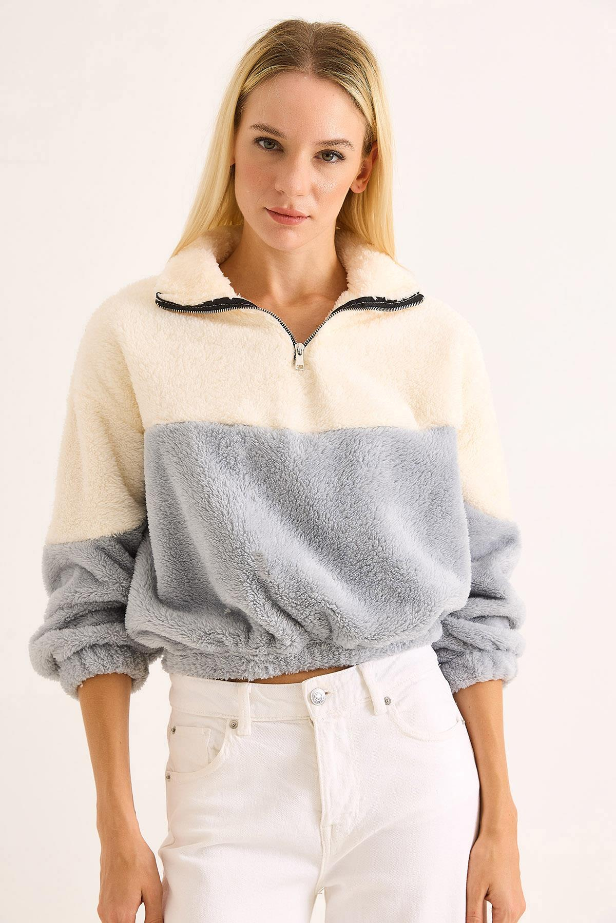 Yumuşak Beli ve Kolu Lastikli Fermuarlı Polar Swet Mavi (500757SWTXMVİ)