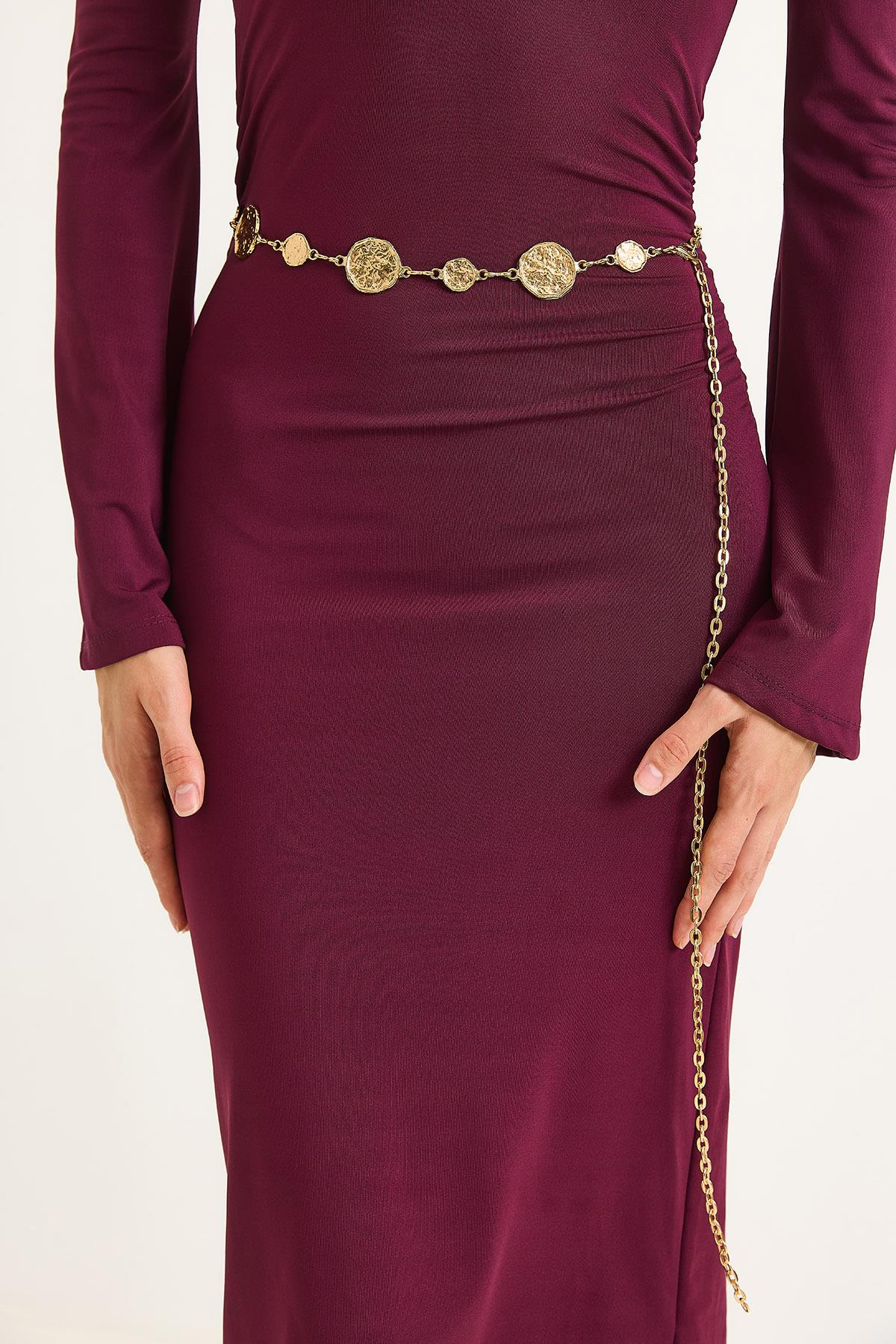 Yuvarlak Plakalı Kadın Zincir Kemer Gold 105 CM (251274KMRXGLD)