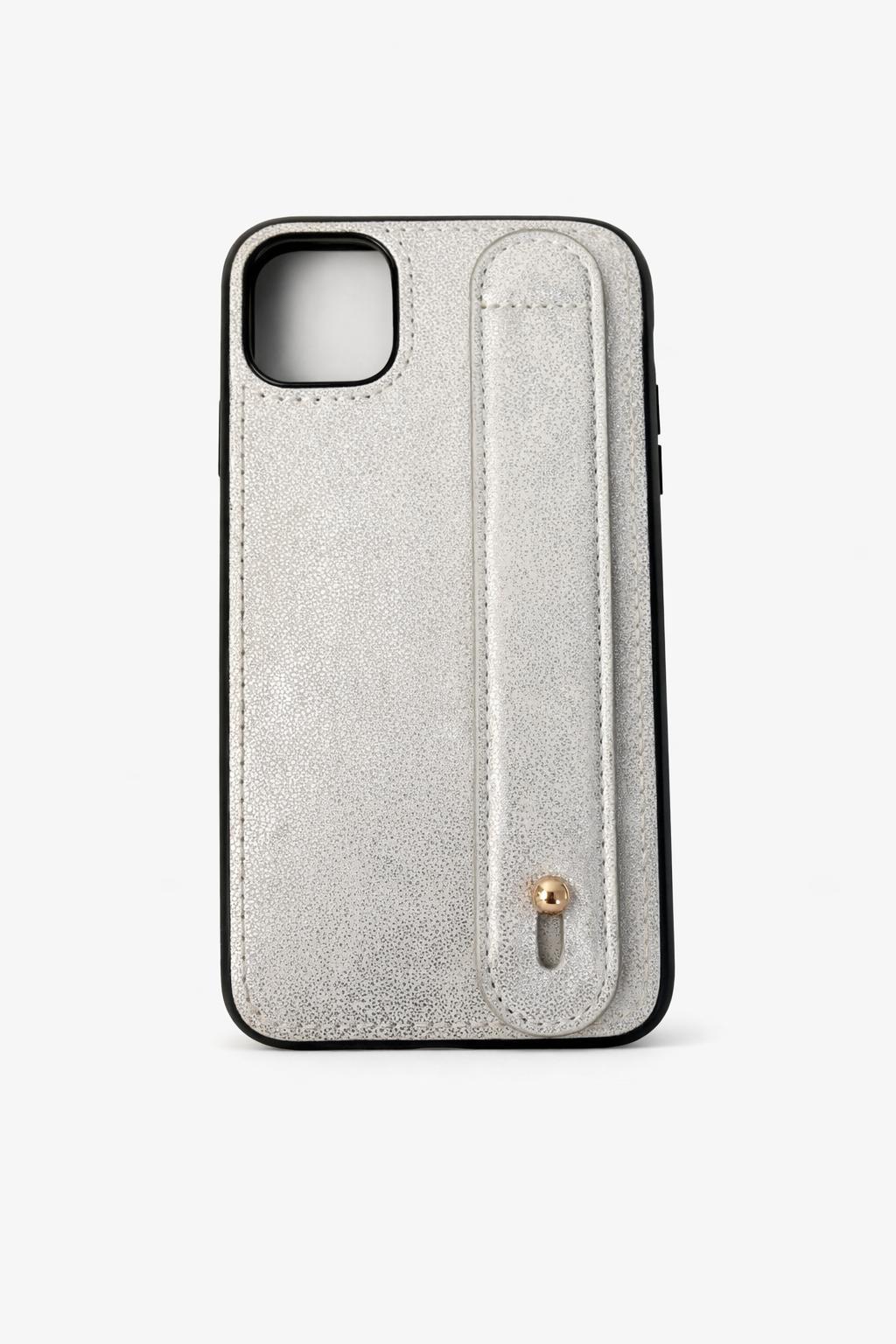 14 Pro Max Charmlı ve Harfli Deri Kılıf Gri