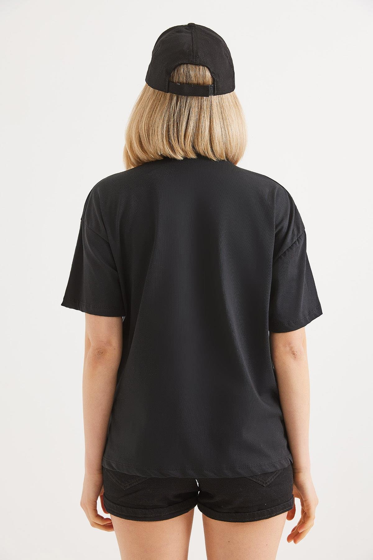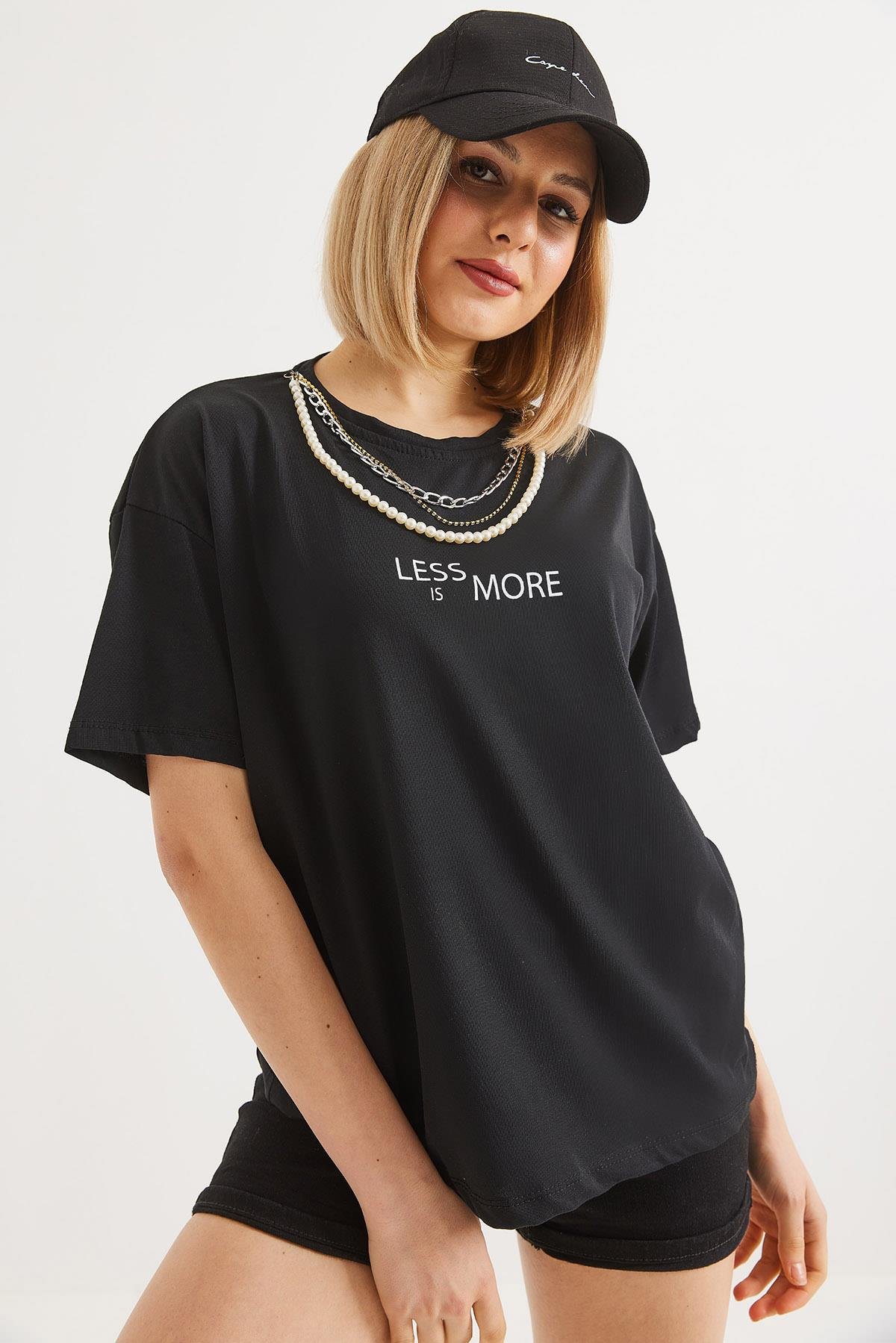 Aksesuar Detaylı Kadın Basic Tshirt Siyah