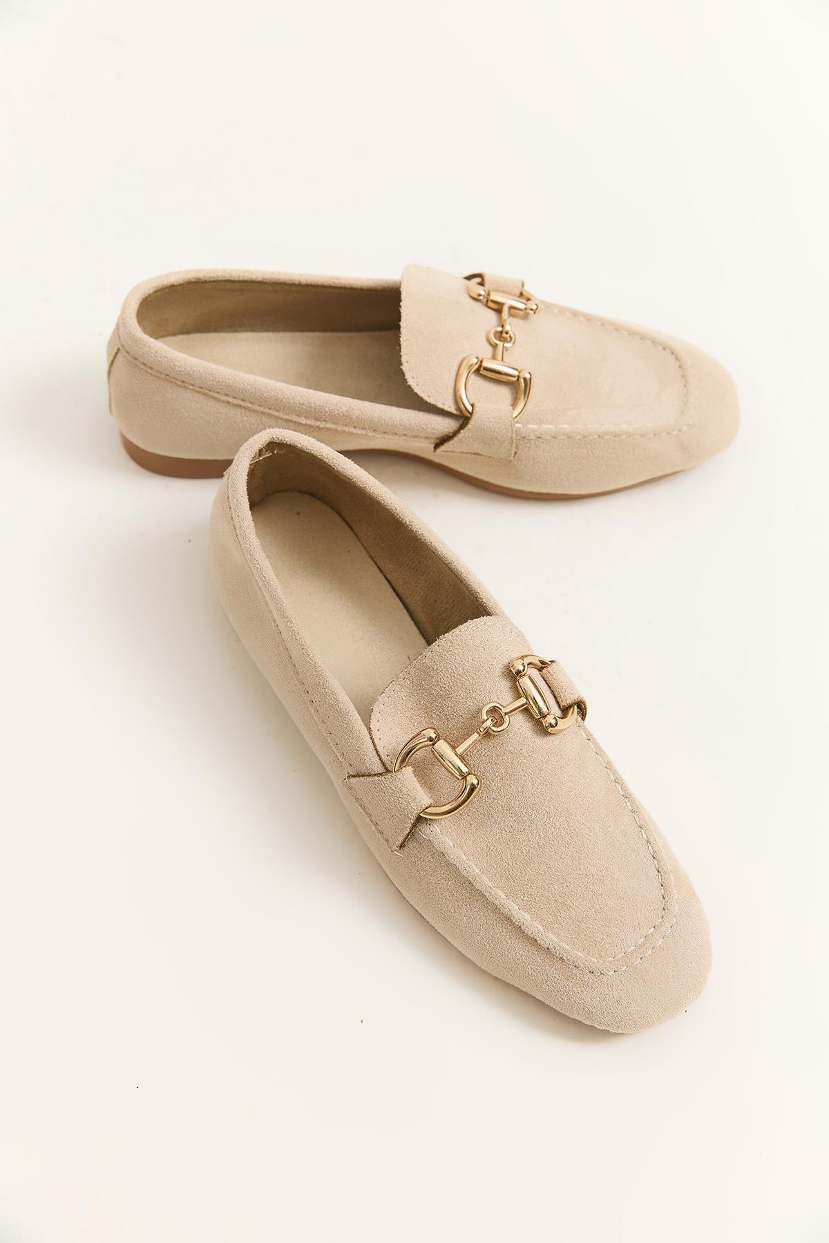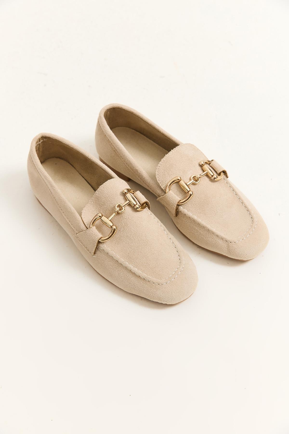 Aksesuar Detaylı Kadın Süet Ayakkabı Bej (252071AYKXBEJ)