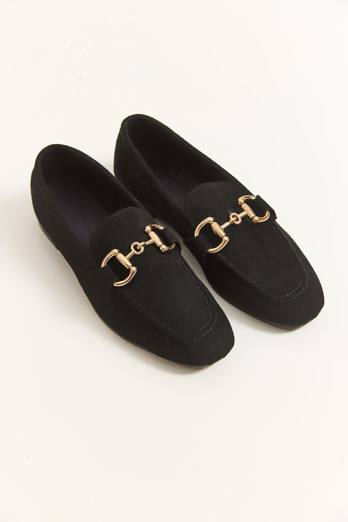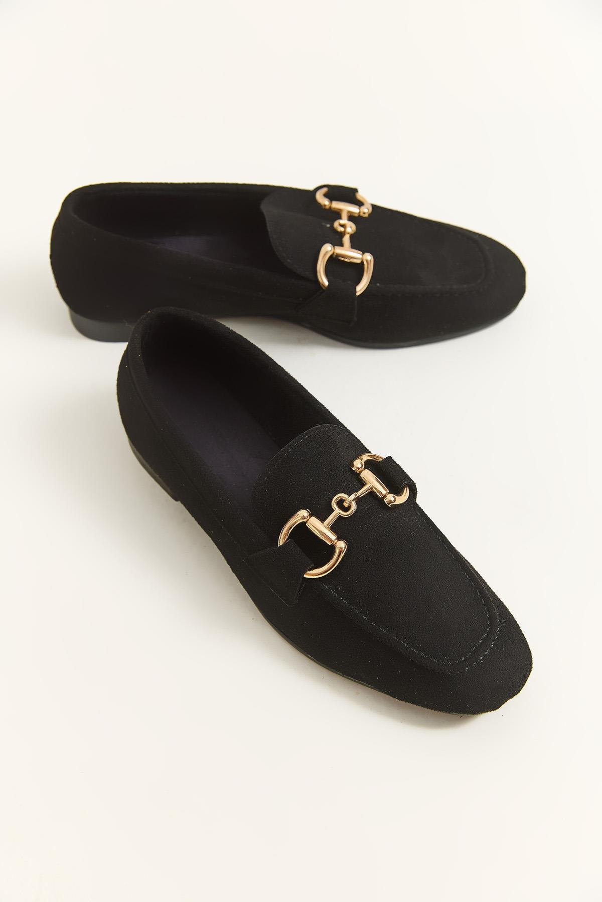 Aksesuar Detaylı Kadın Süet Ayakkabı Siyah (252071AYKXSYH)