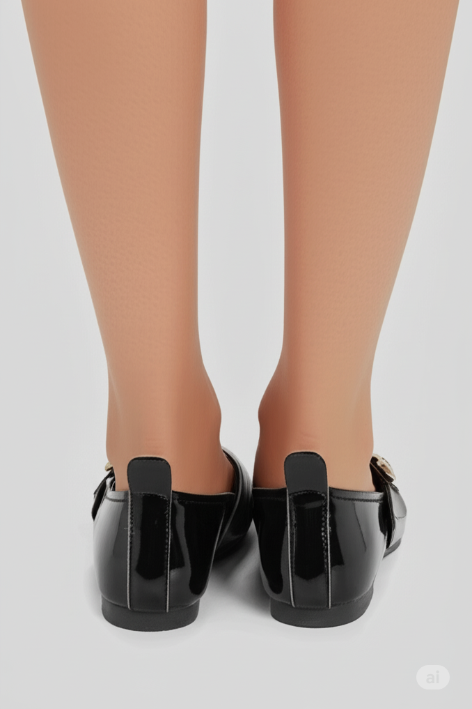 Aksesuar Detaylı Rugan Kadın Babet Siyah (251163AYKXSYH)