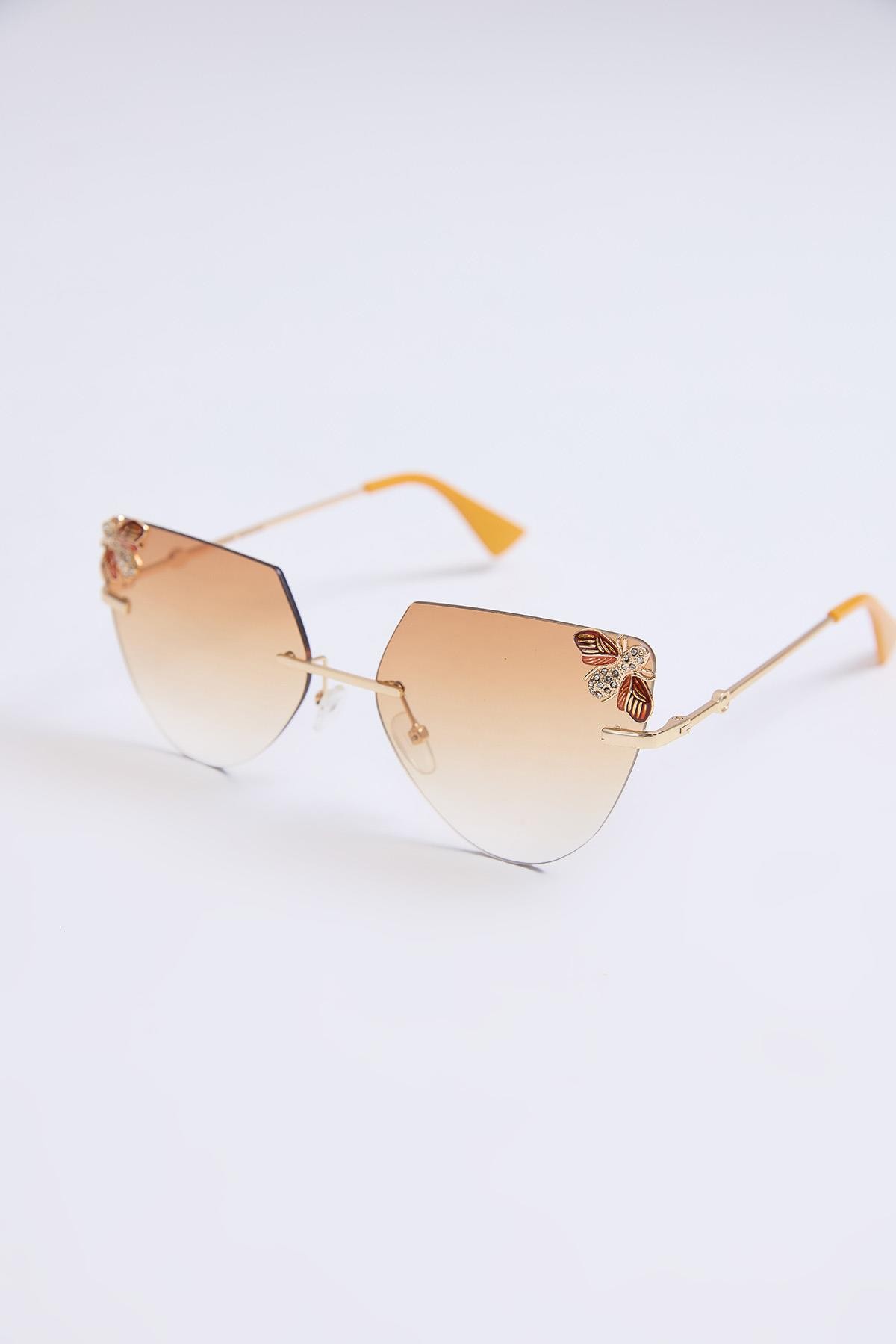 Aksesuarlı  Çerçevesiz Model  Kadın Güneş Gözlüğü Kahverengi