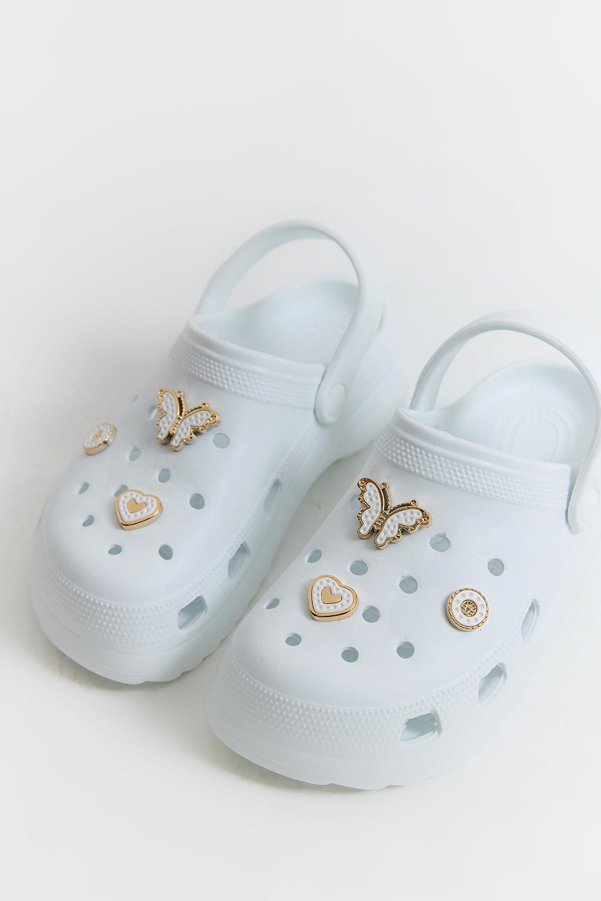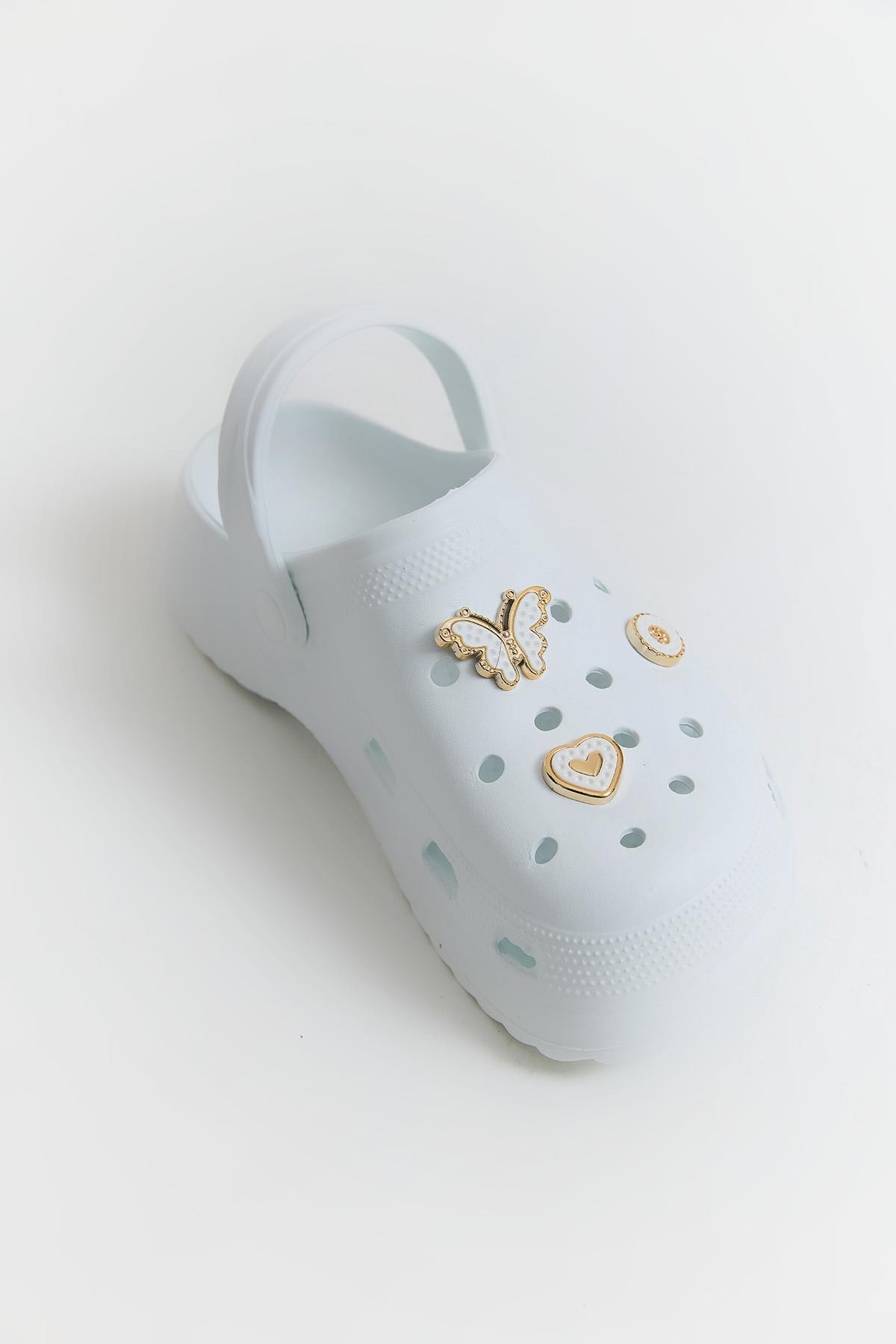 Aksesuarlı Yüksek Taban Kadın Terlik Beyaz