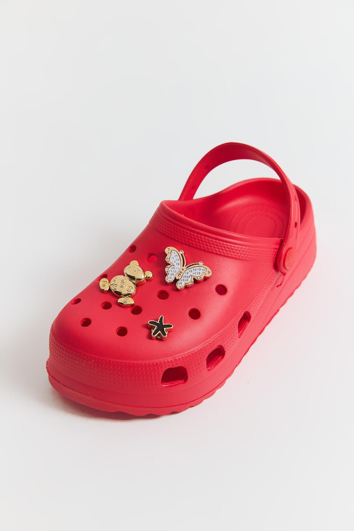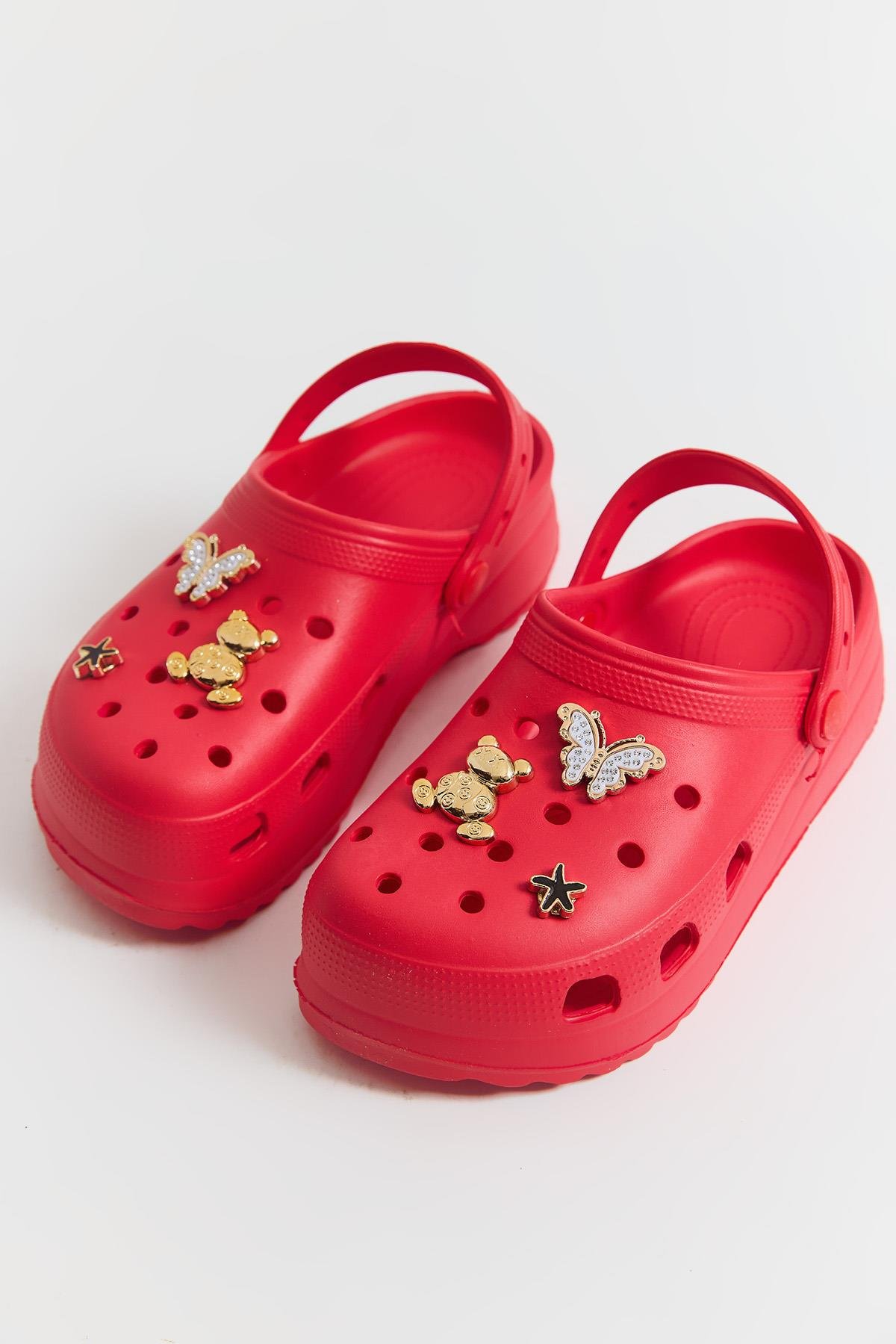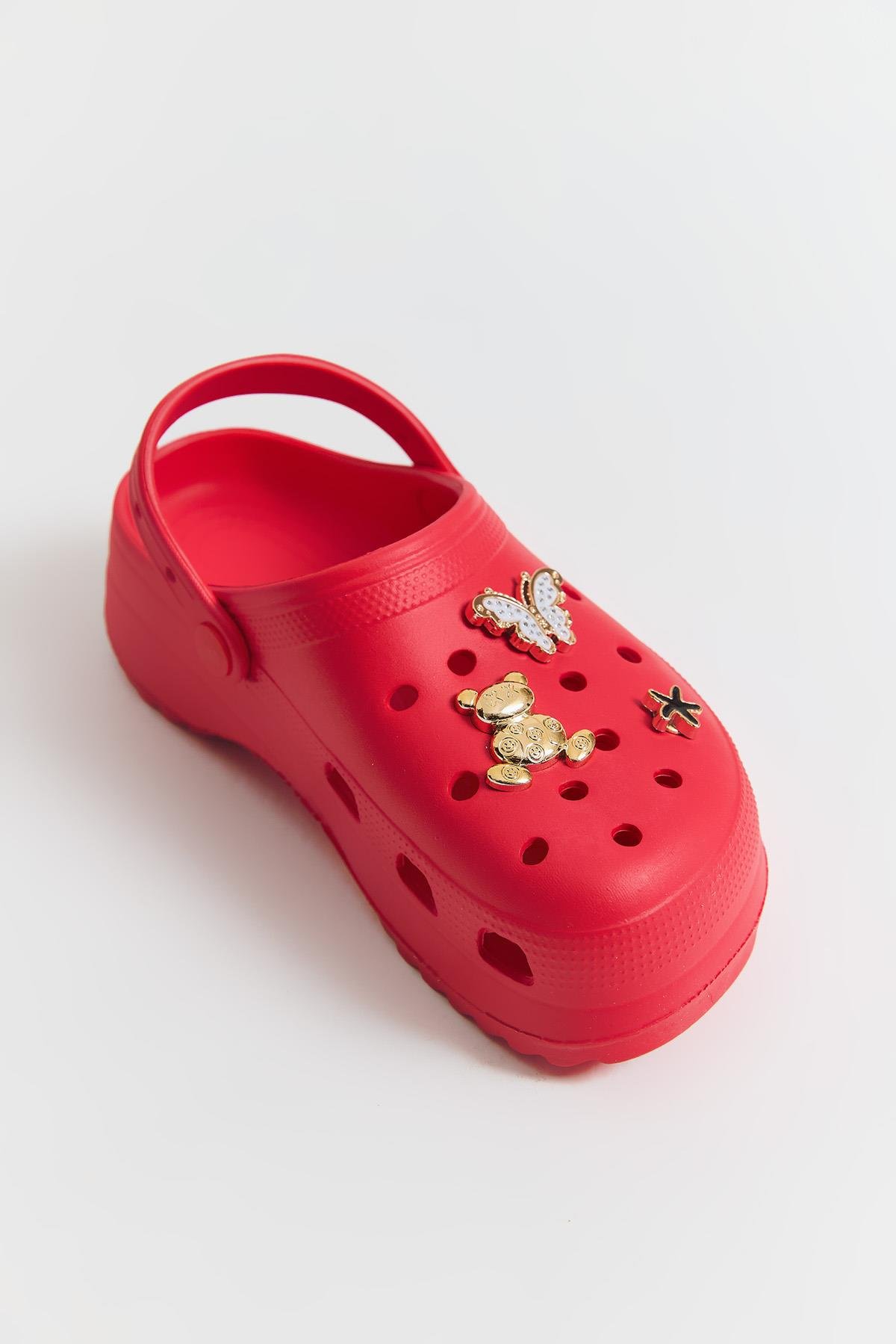 Aksesuarlı Yüksek Taban Kadın Terlik Kırmızı