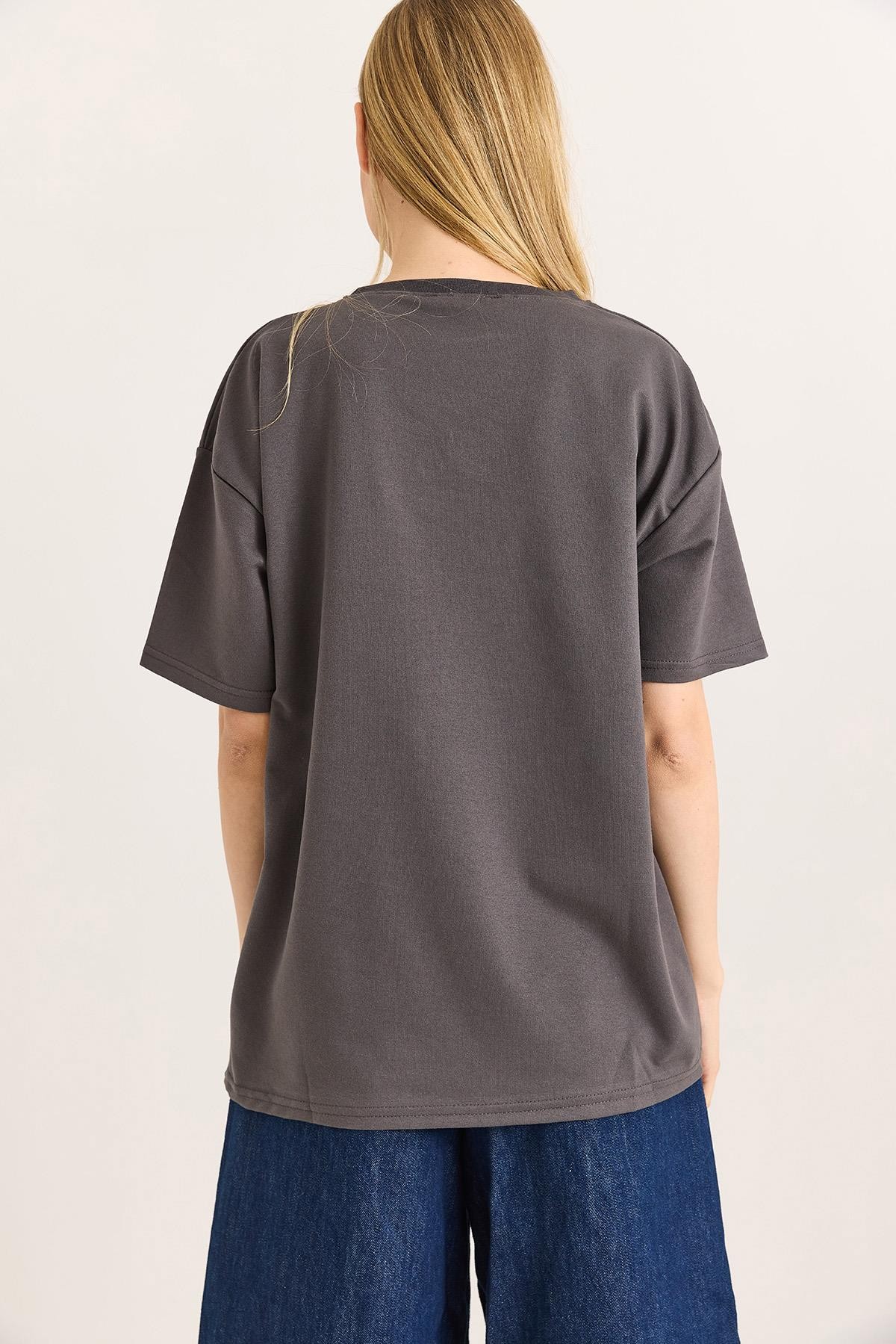 Alo Nakışlı Oversize Unisex Tshirt Füme (250699TSHXFME)