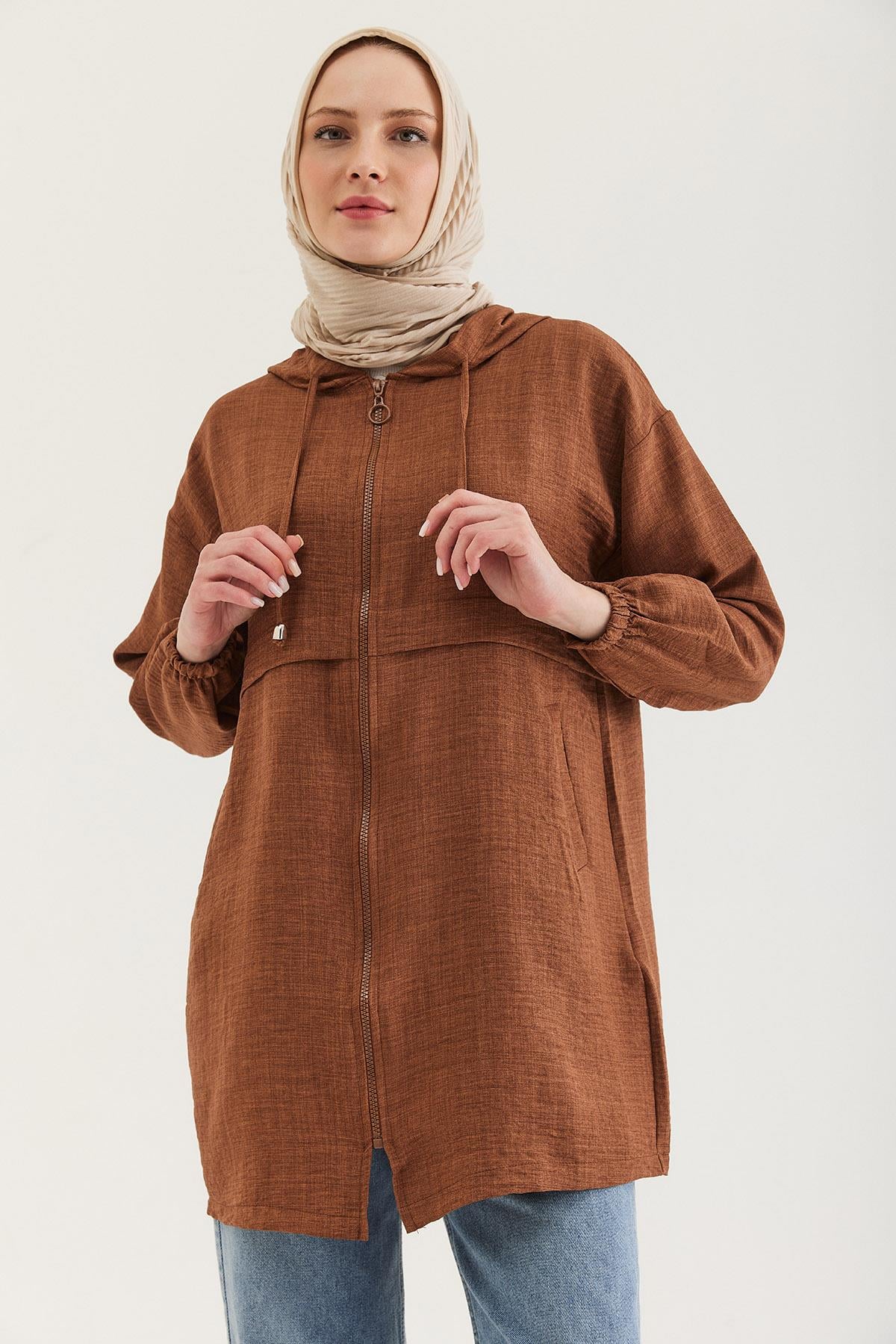 Araboy Kapşonlu Keten Kap Kahverengi (250427TNKXKHV)