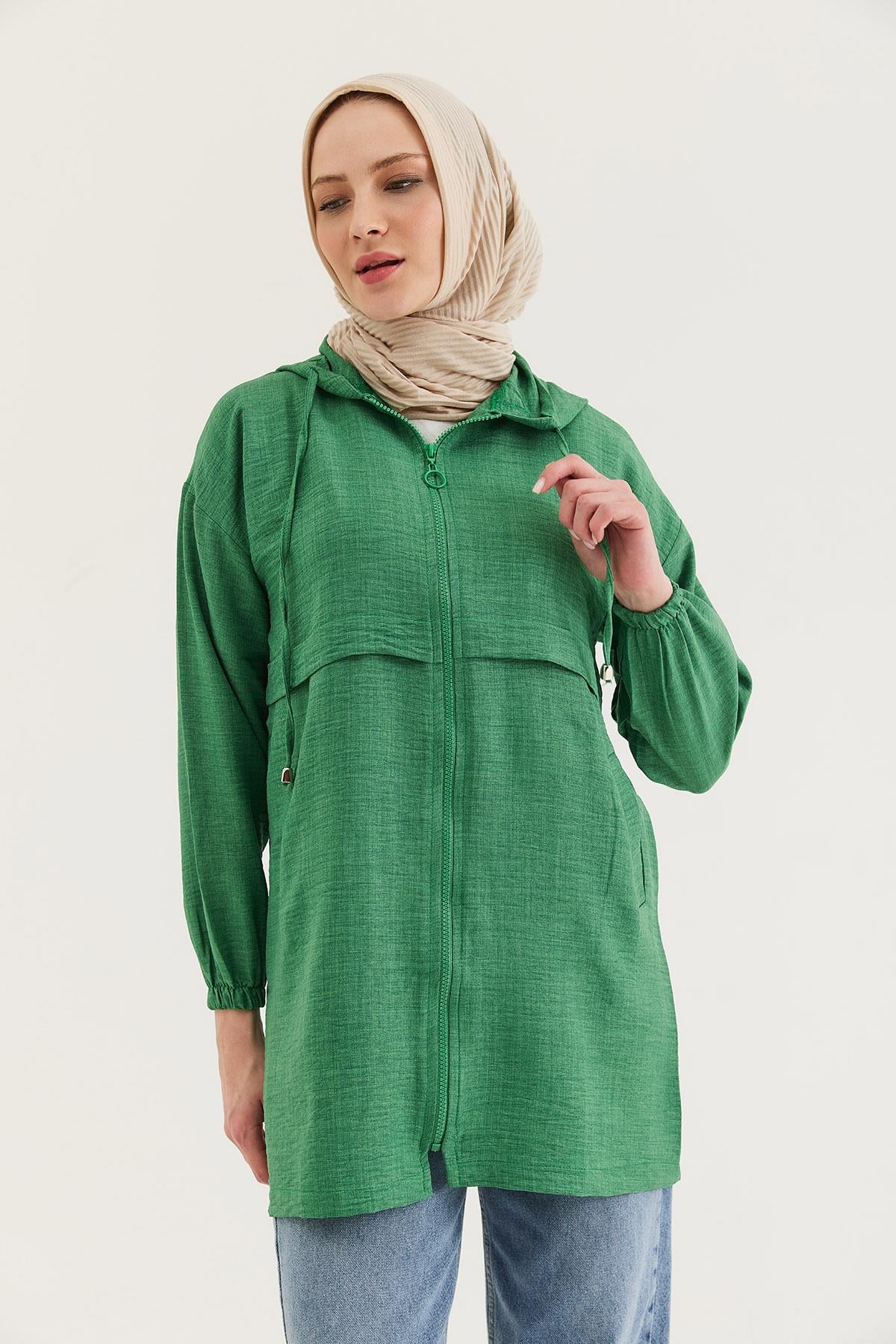 Araboy Kapşonlu Keten Kap Yeşil (250427TNKXYSL)