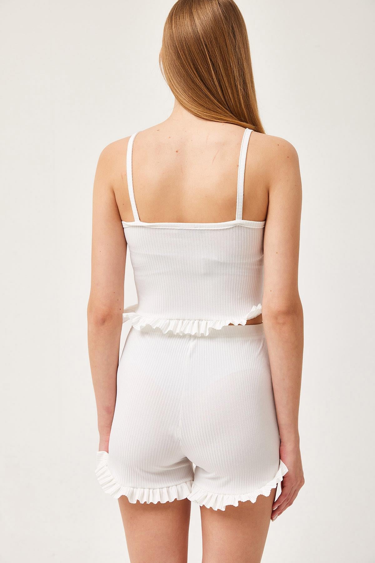 Askılı Fırfırlı Şortlu Takım Beyaz (250349TKMXBYZ)