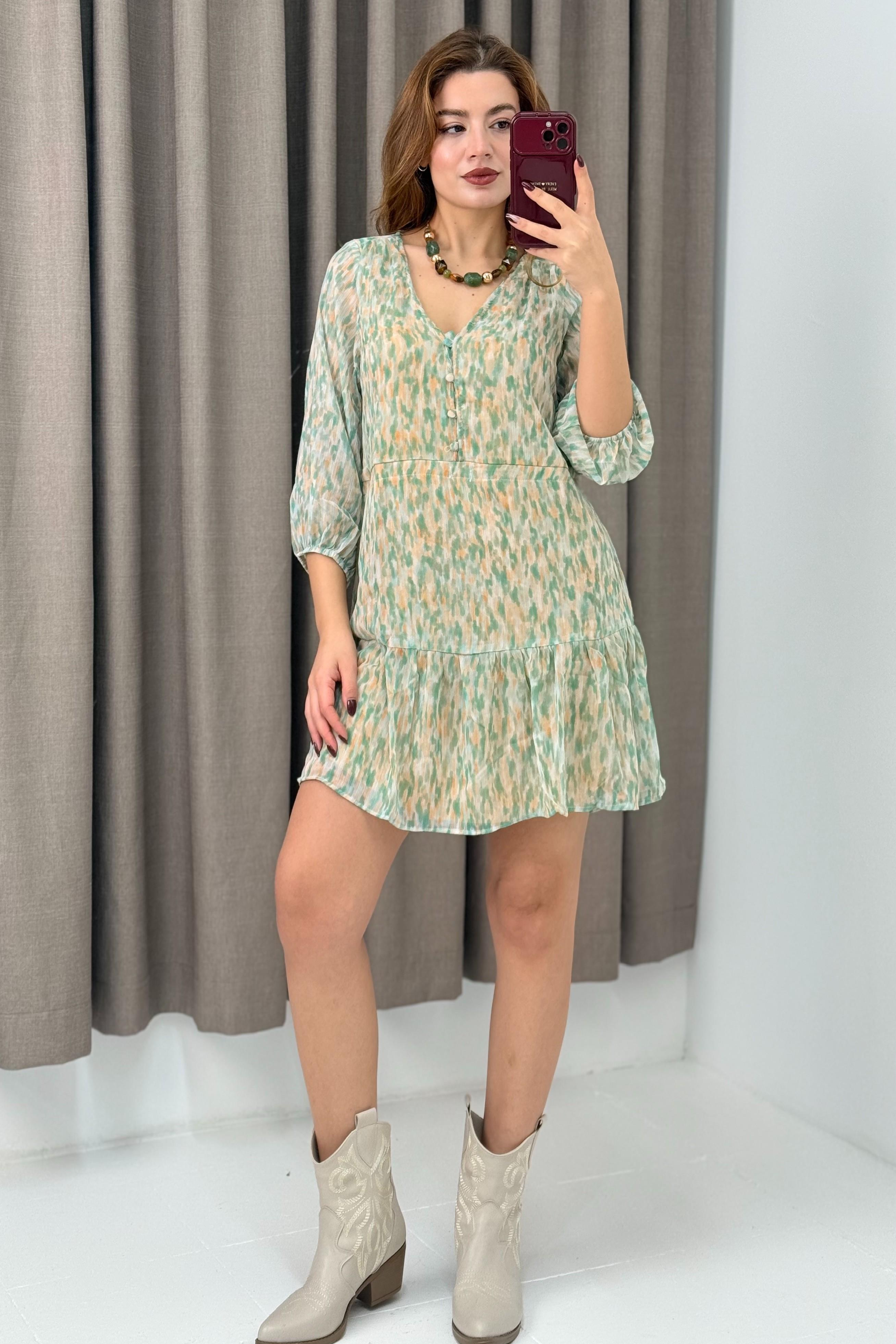 Astarlı V yaka Özel Tasarım Şifon Elbise Yeşil