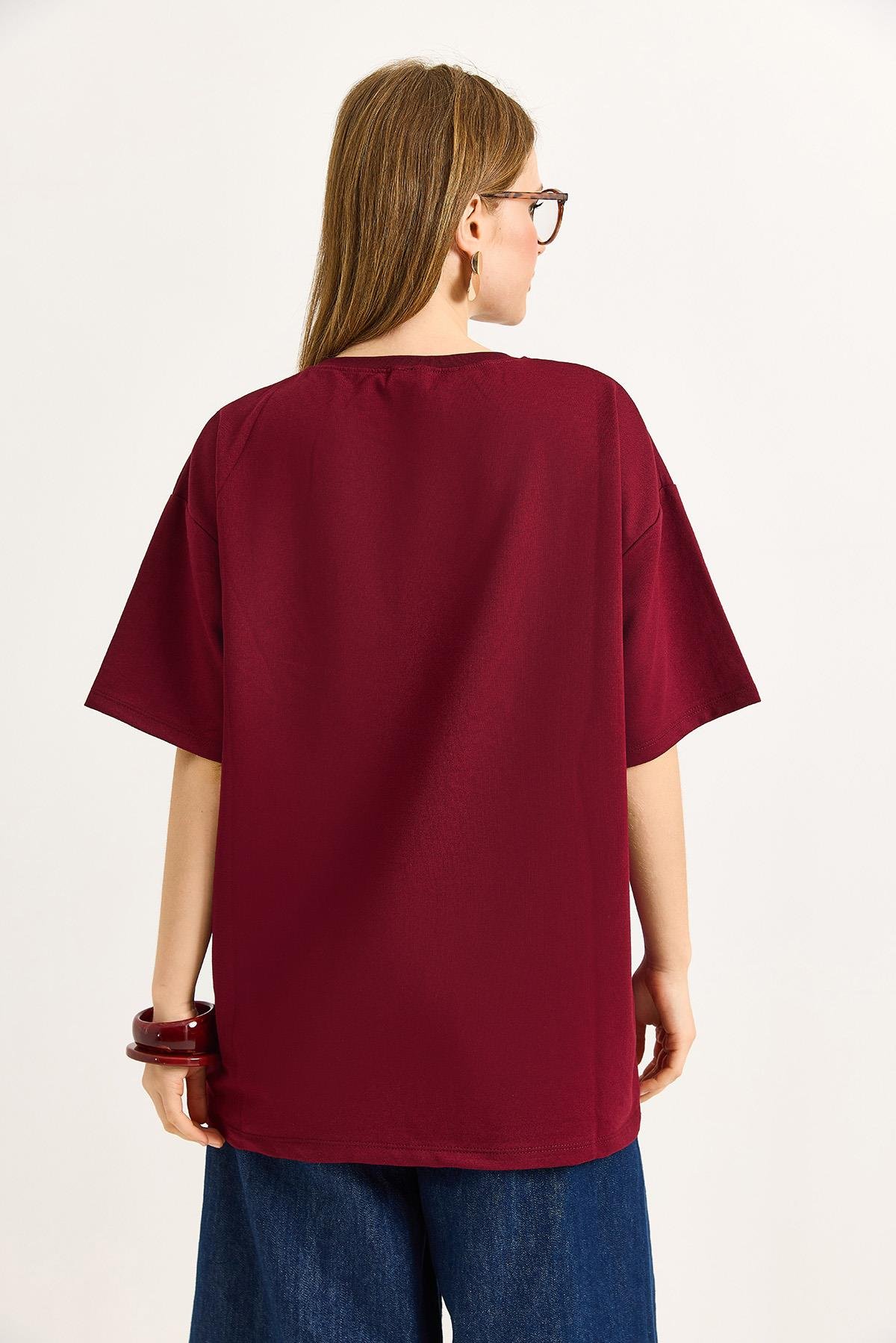 Ayıcık Baskılı Bisiklet Yaka Tshirt Bordo (250560TSHXBRD)