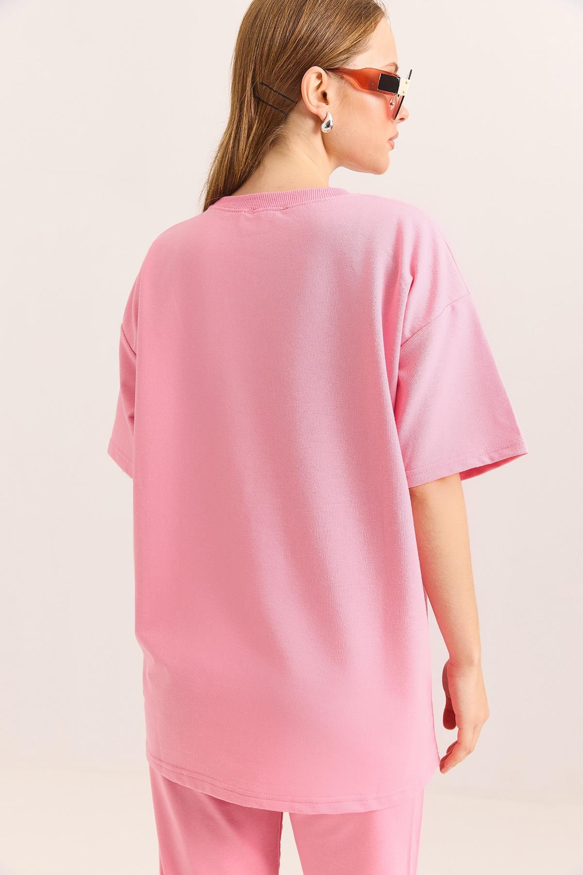 Ayıcık Nakışlı Oversize İki İp Tshirt Pembe (500029TSHXPMB)