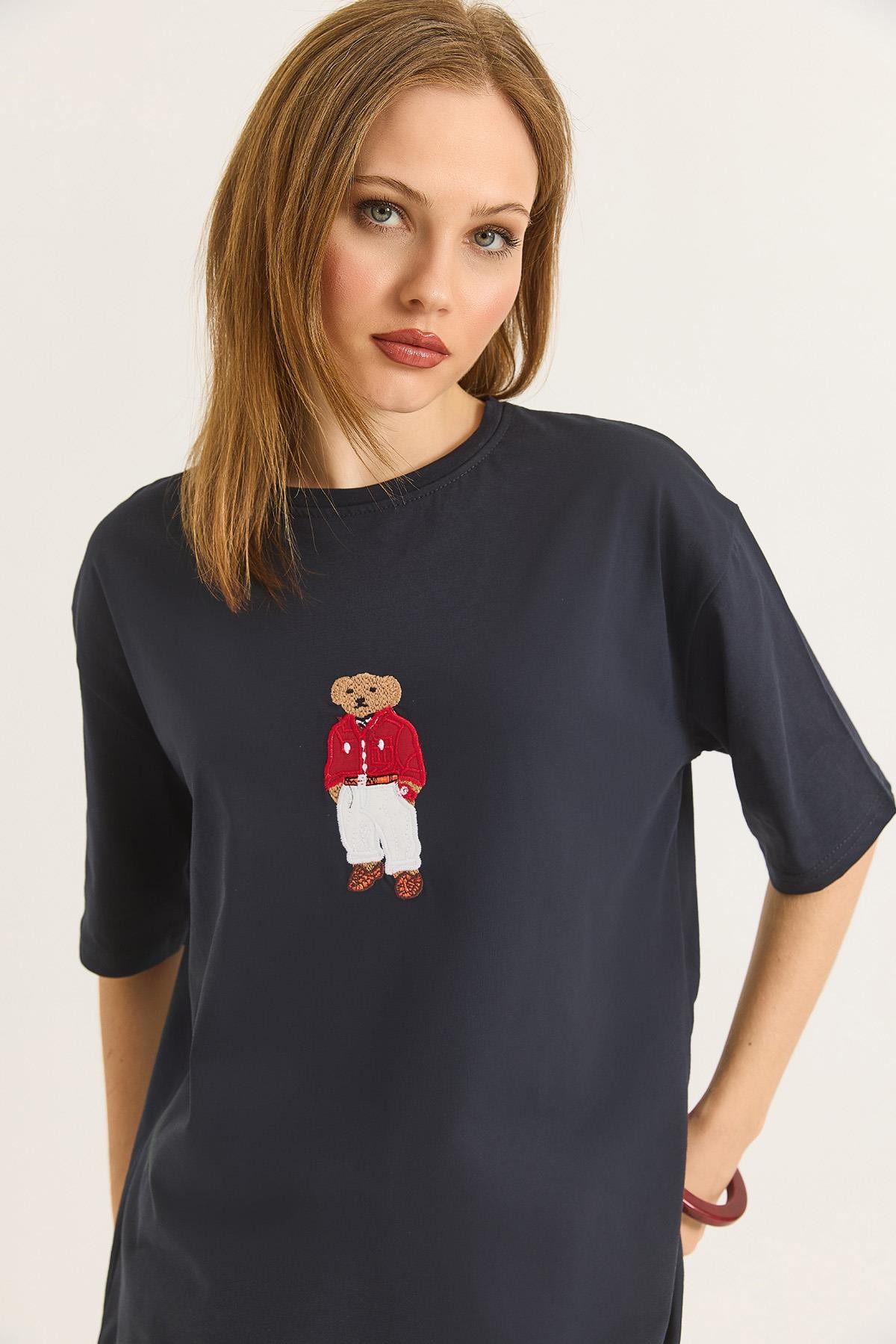Ayıcık Nakışlı Rahat Kalıplı Tshirt  Antrasit