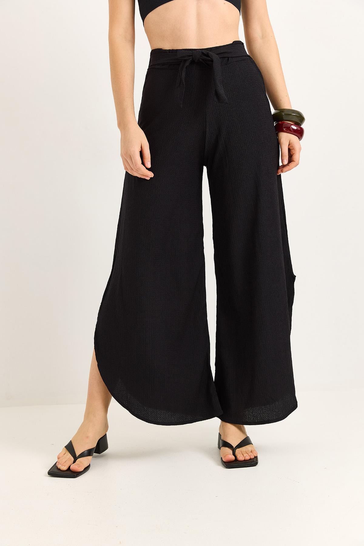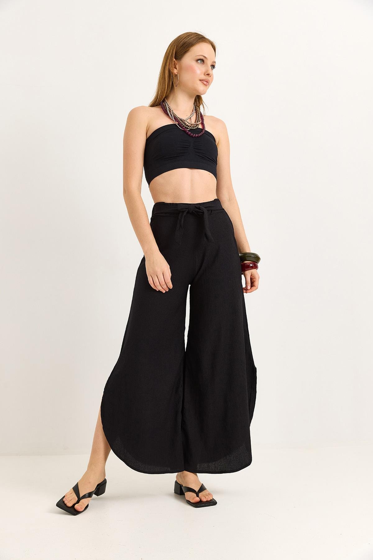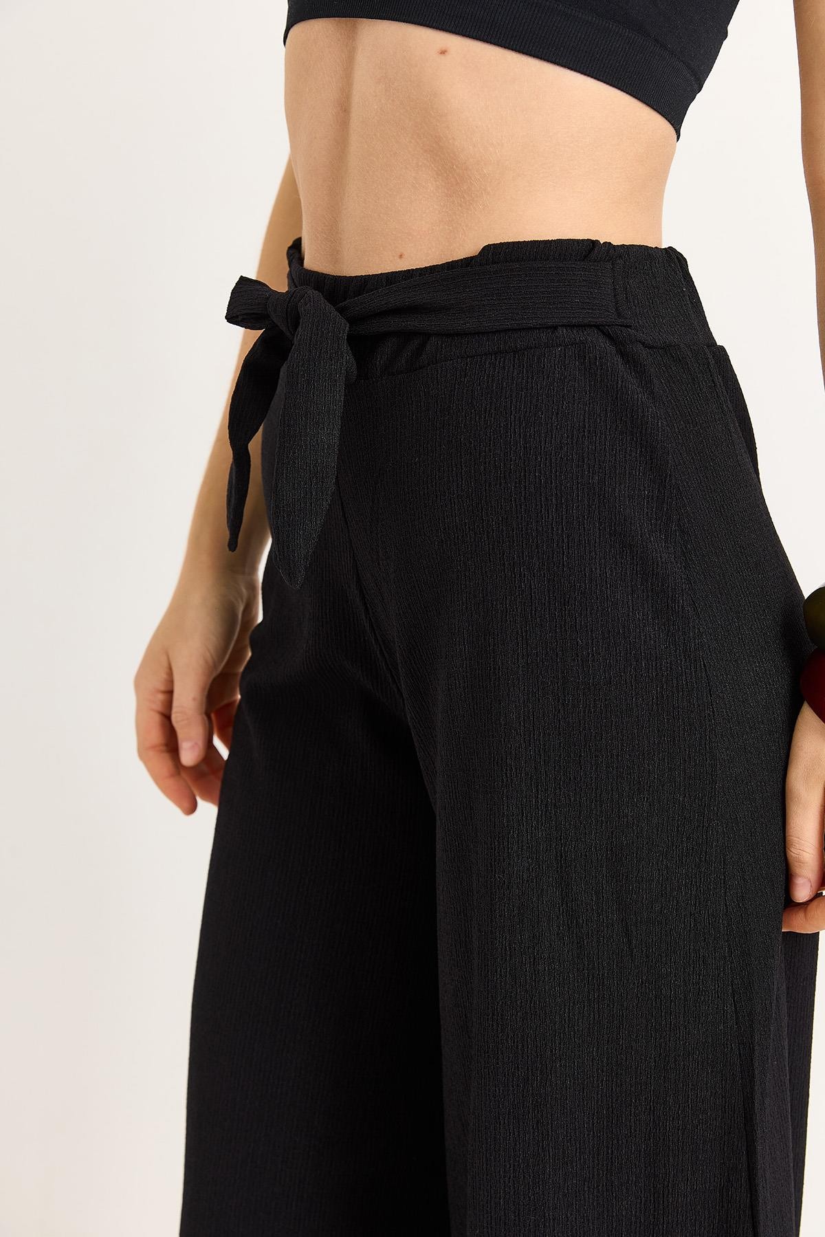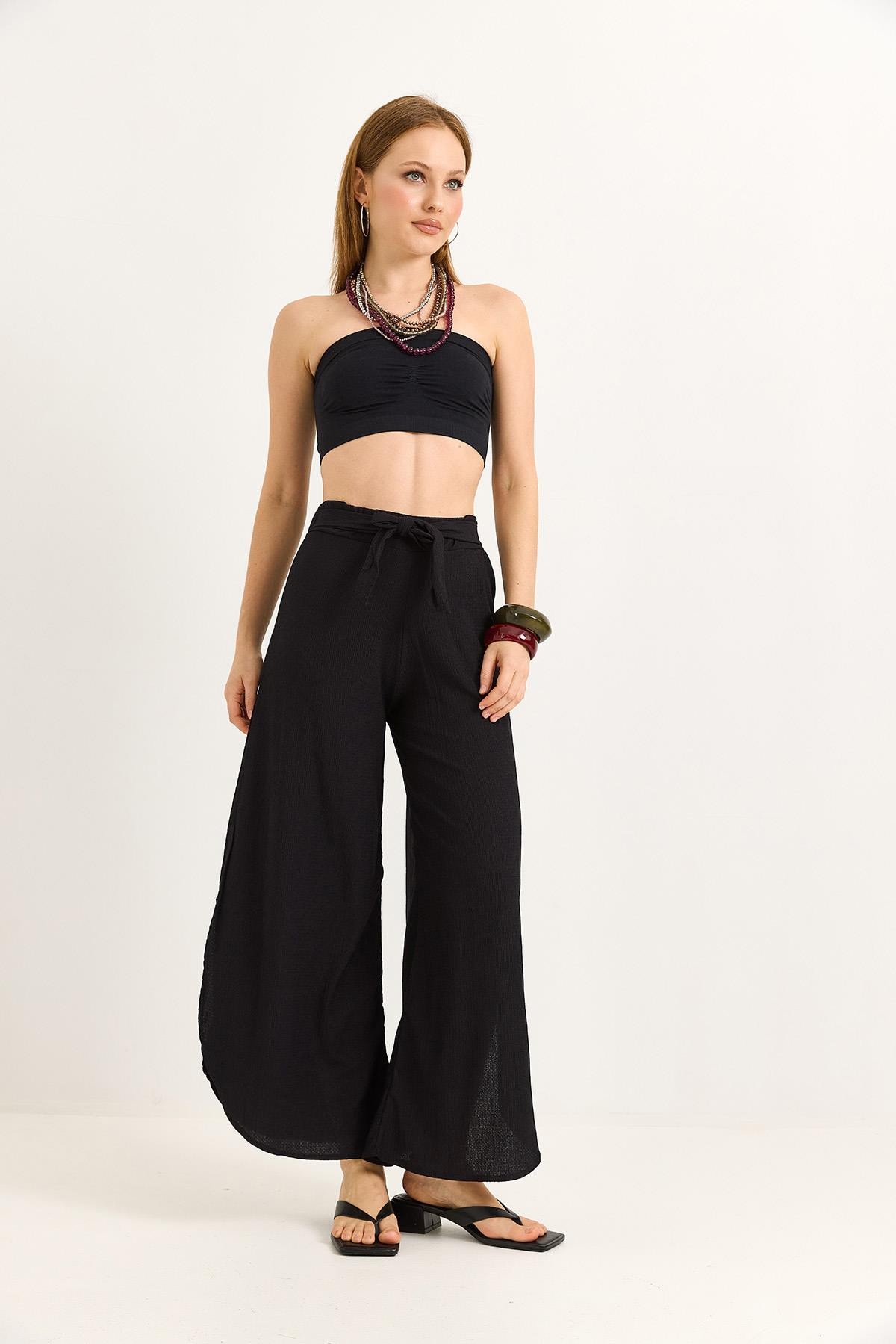Bağlamalı Bol Paça İspanyol Pantalon Siyah (500211PNTXSYH)