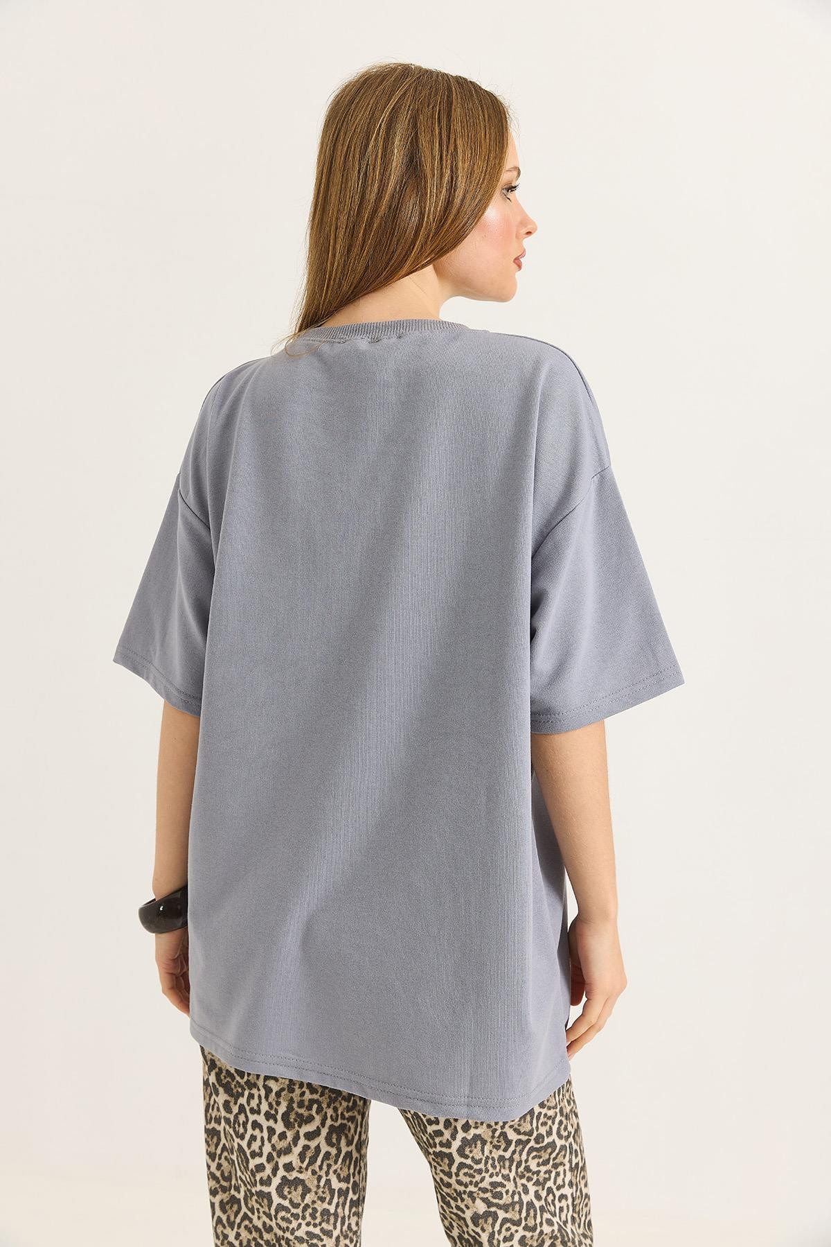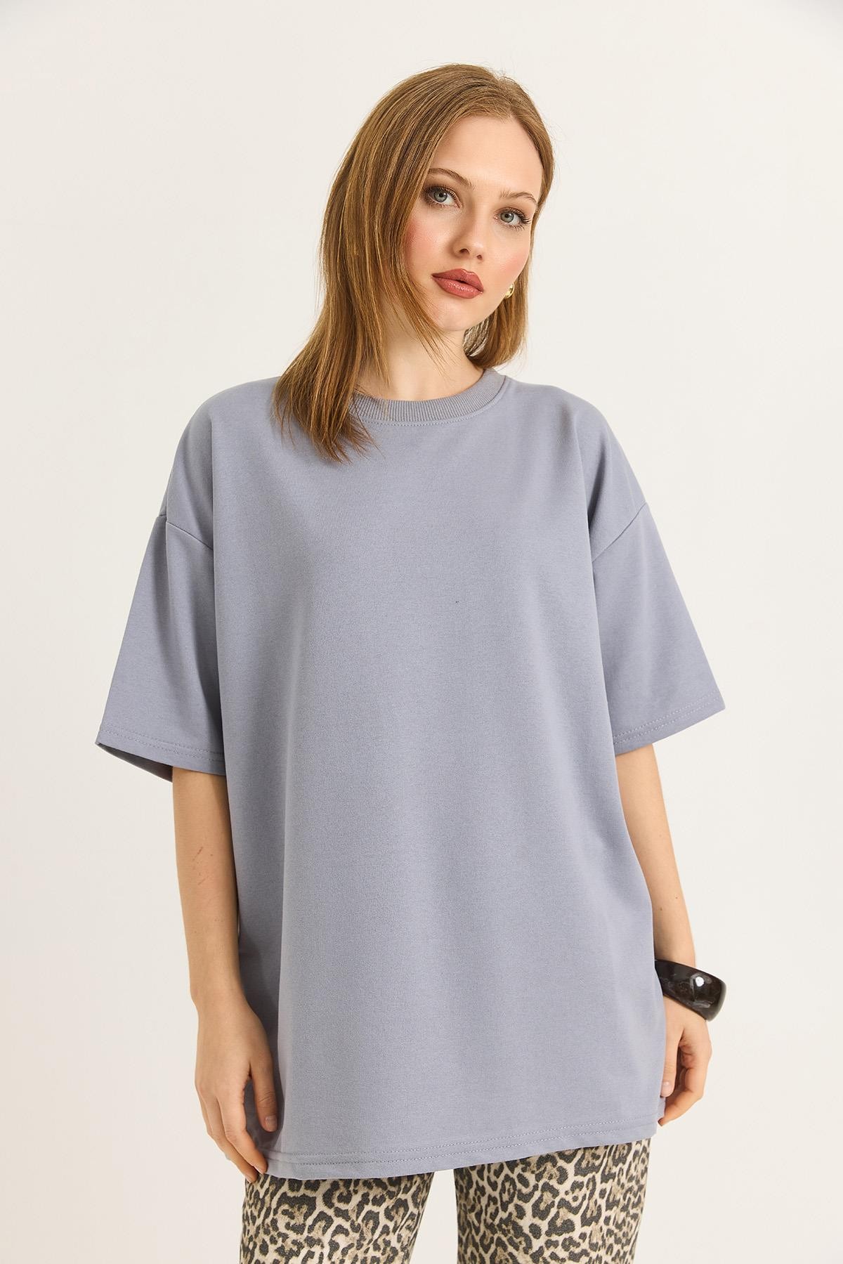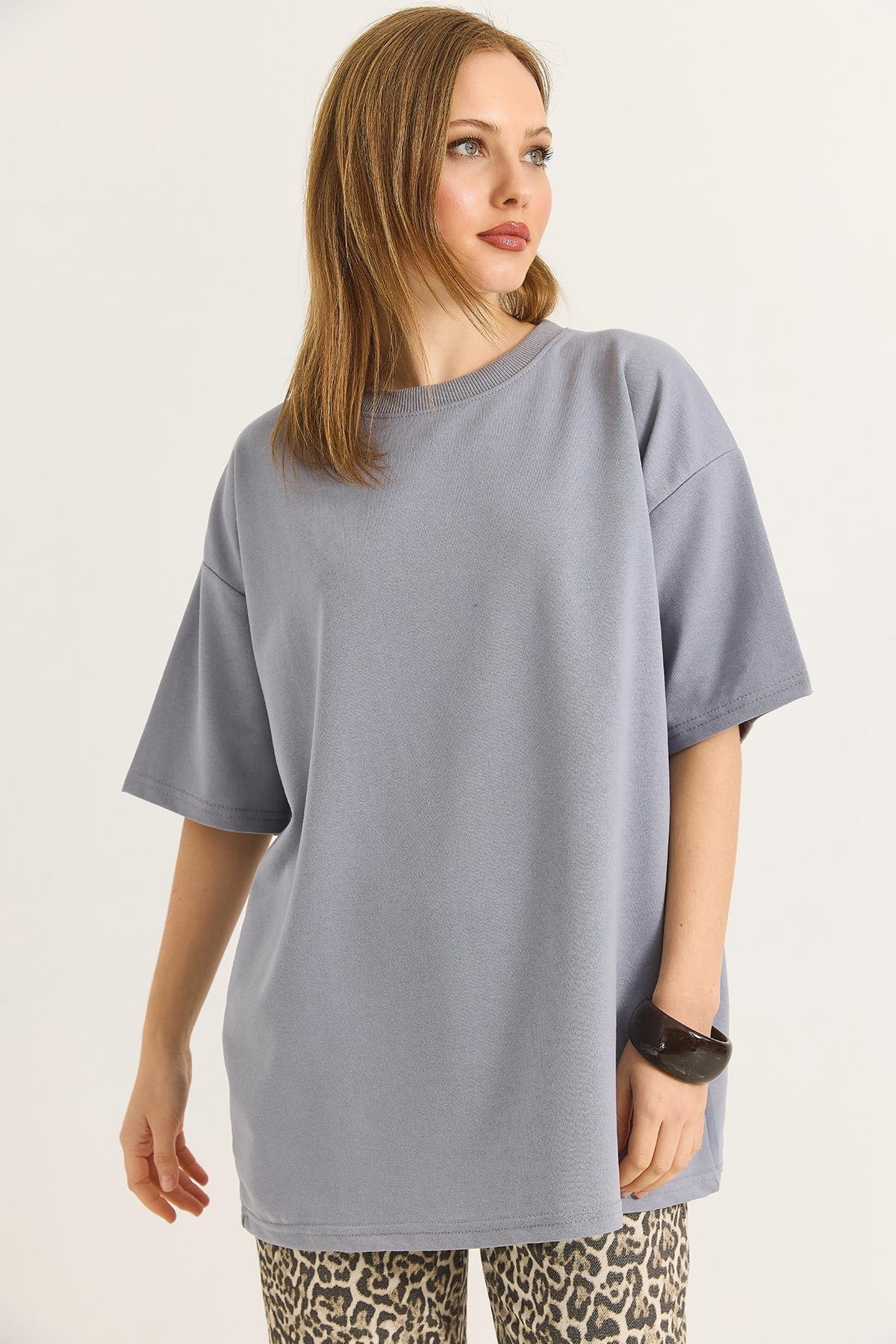 Basic Bisiklet Yaka Tshirt Gri (500139TSHXGRİ)