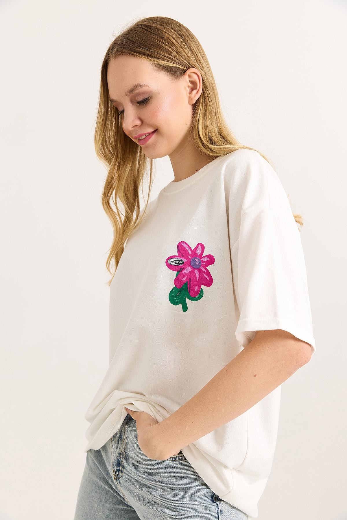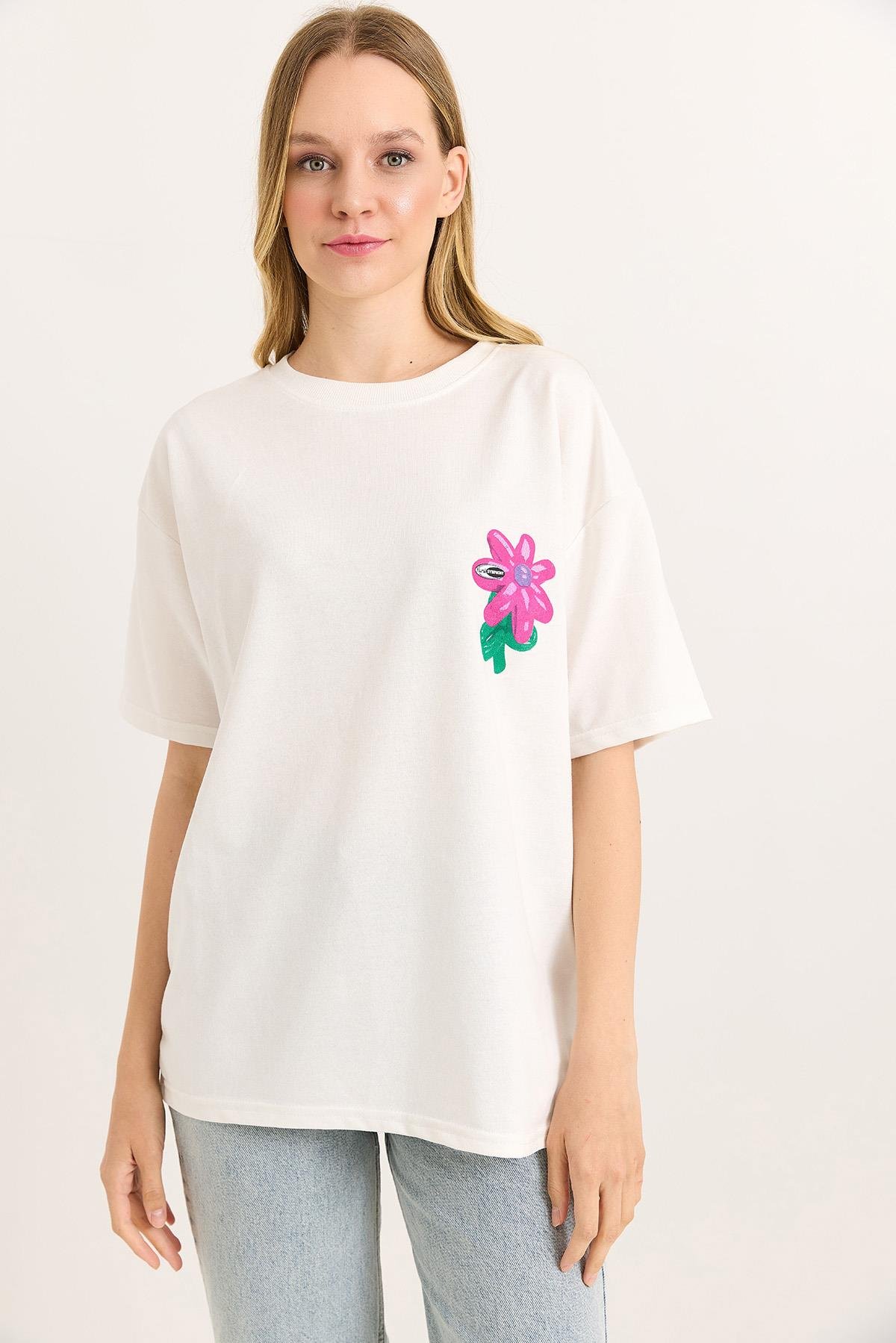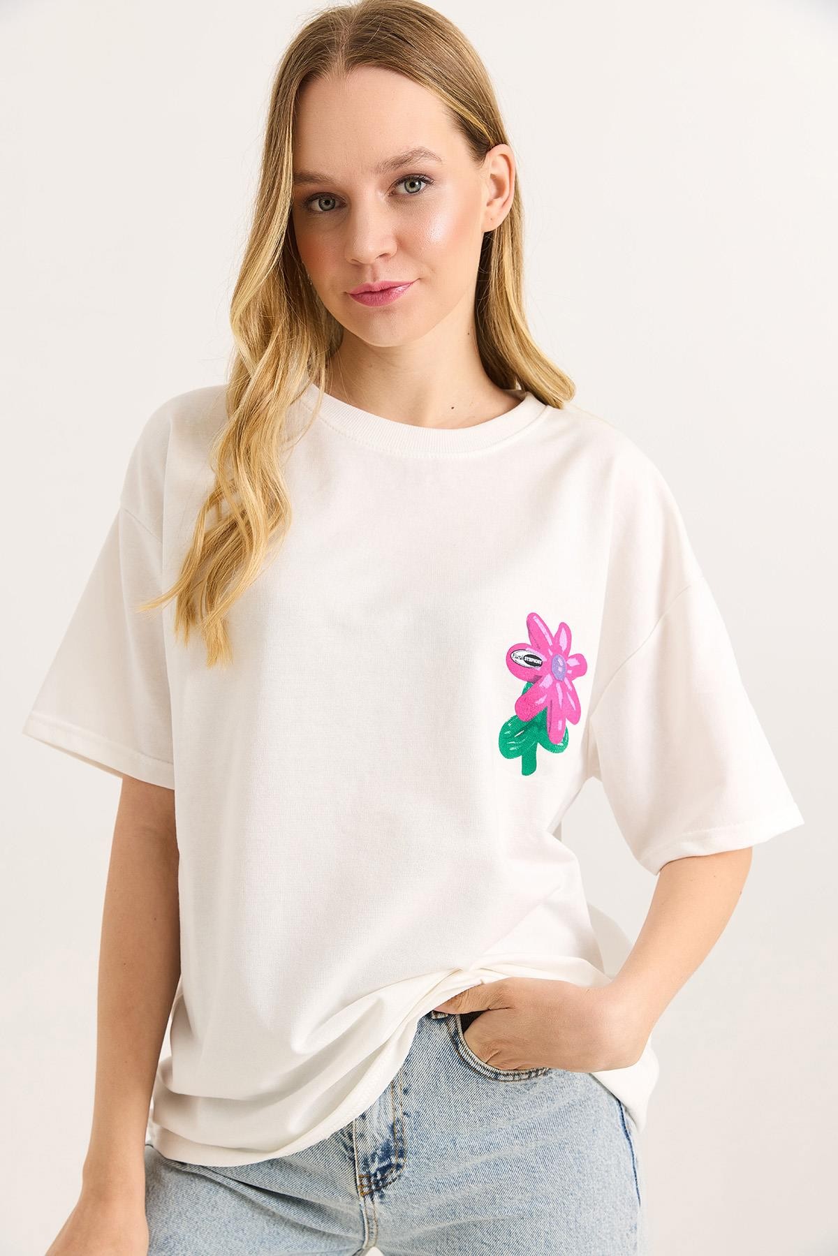 Baskılı Bisiklet Yaka Basic Tshirt Beyaz (251002TSHXBYZ)