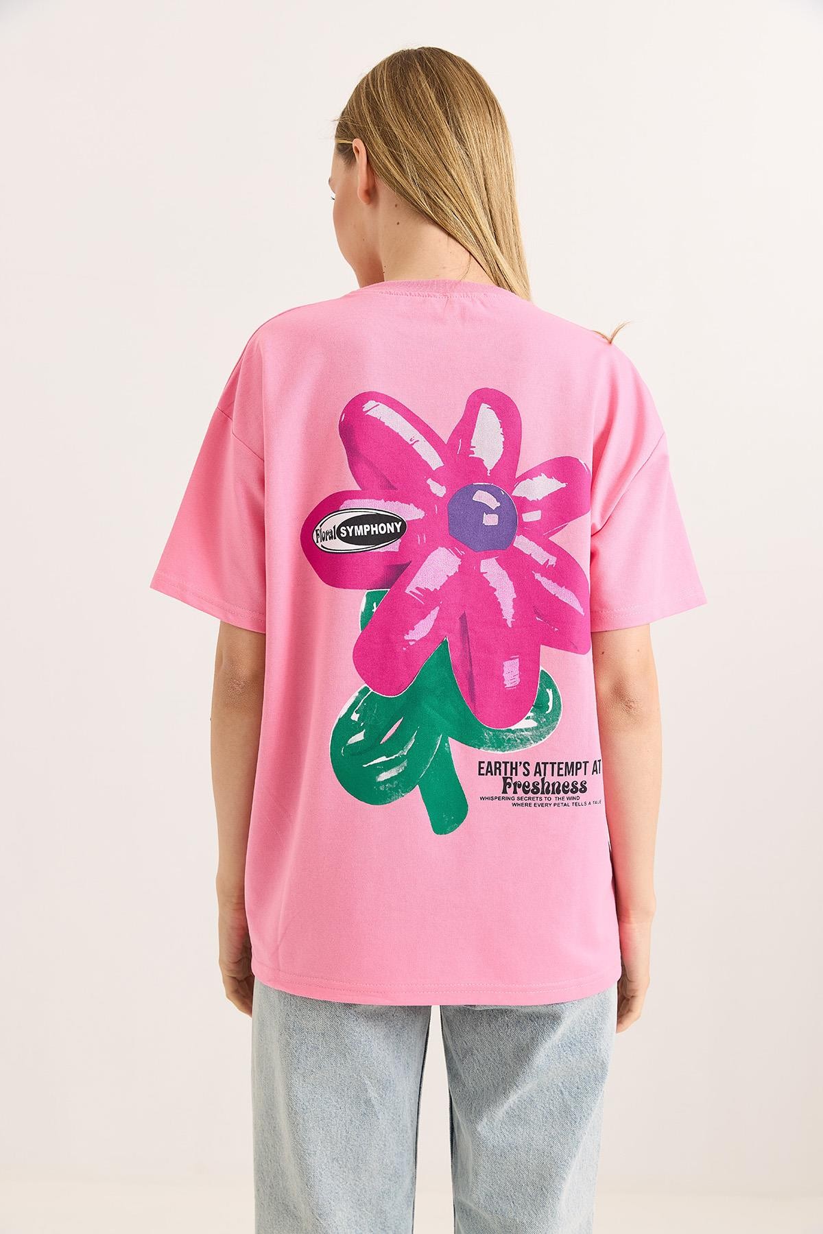 Baskılı Bisiklet Yaka Basic Tshirt Pembe (251002TSHXPMB)