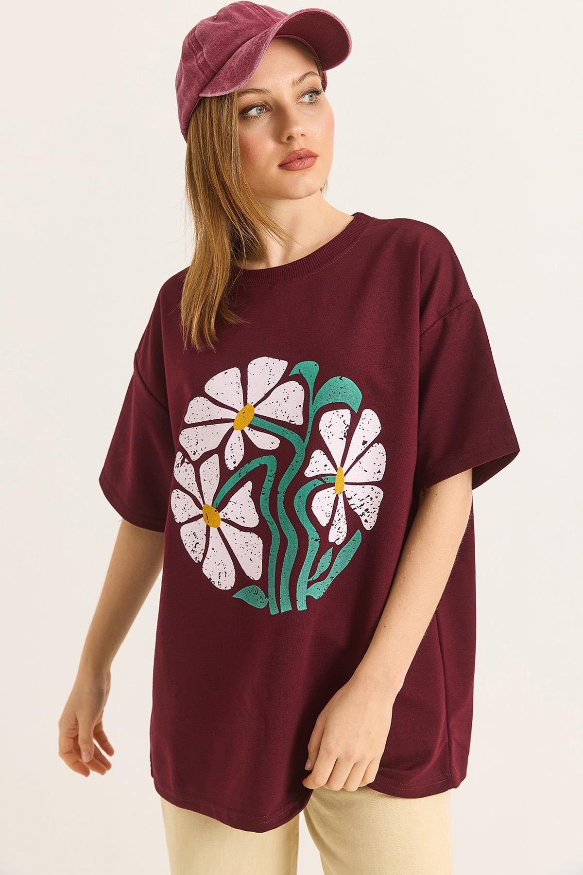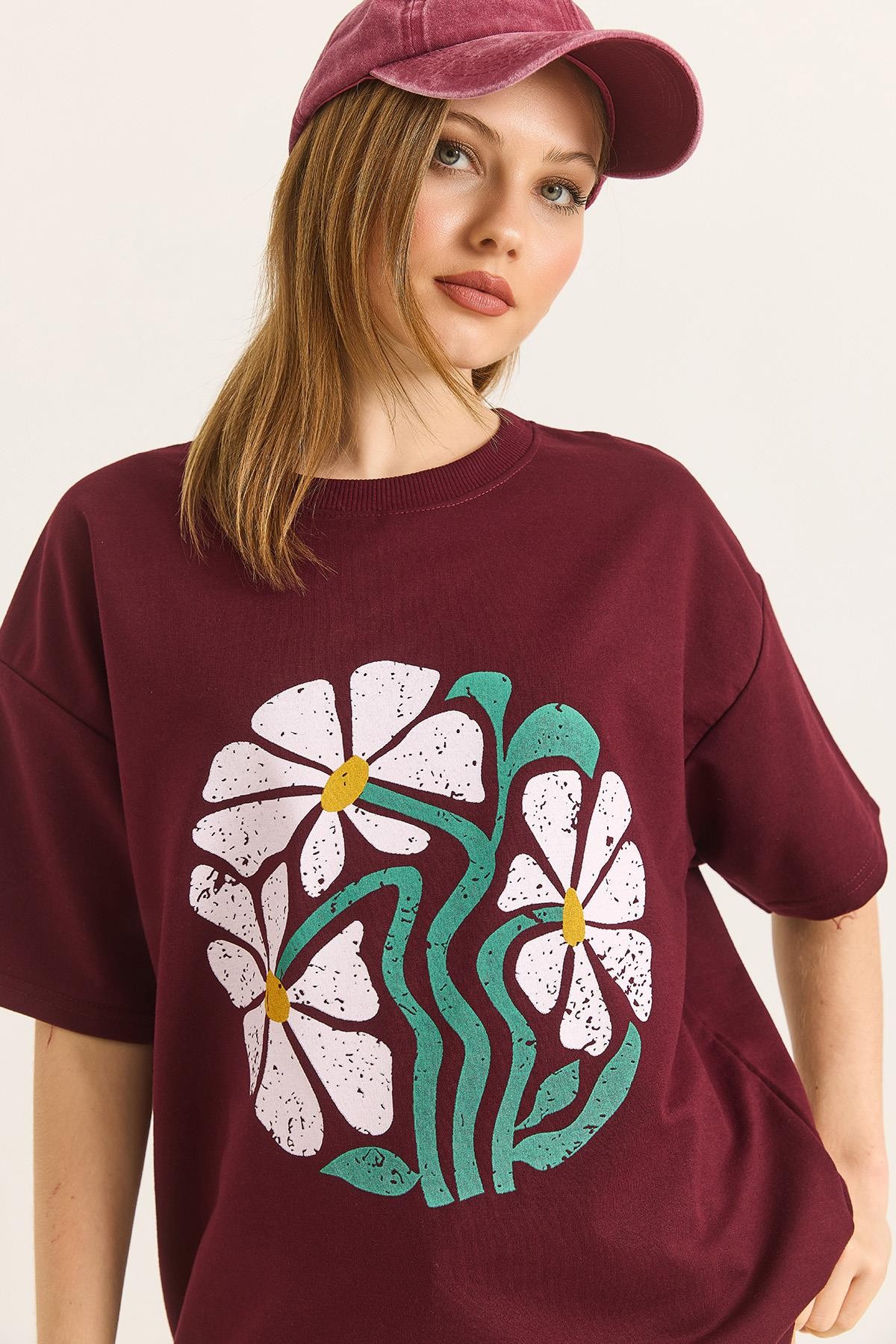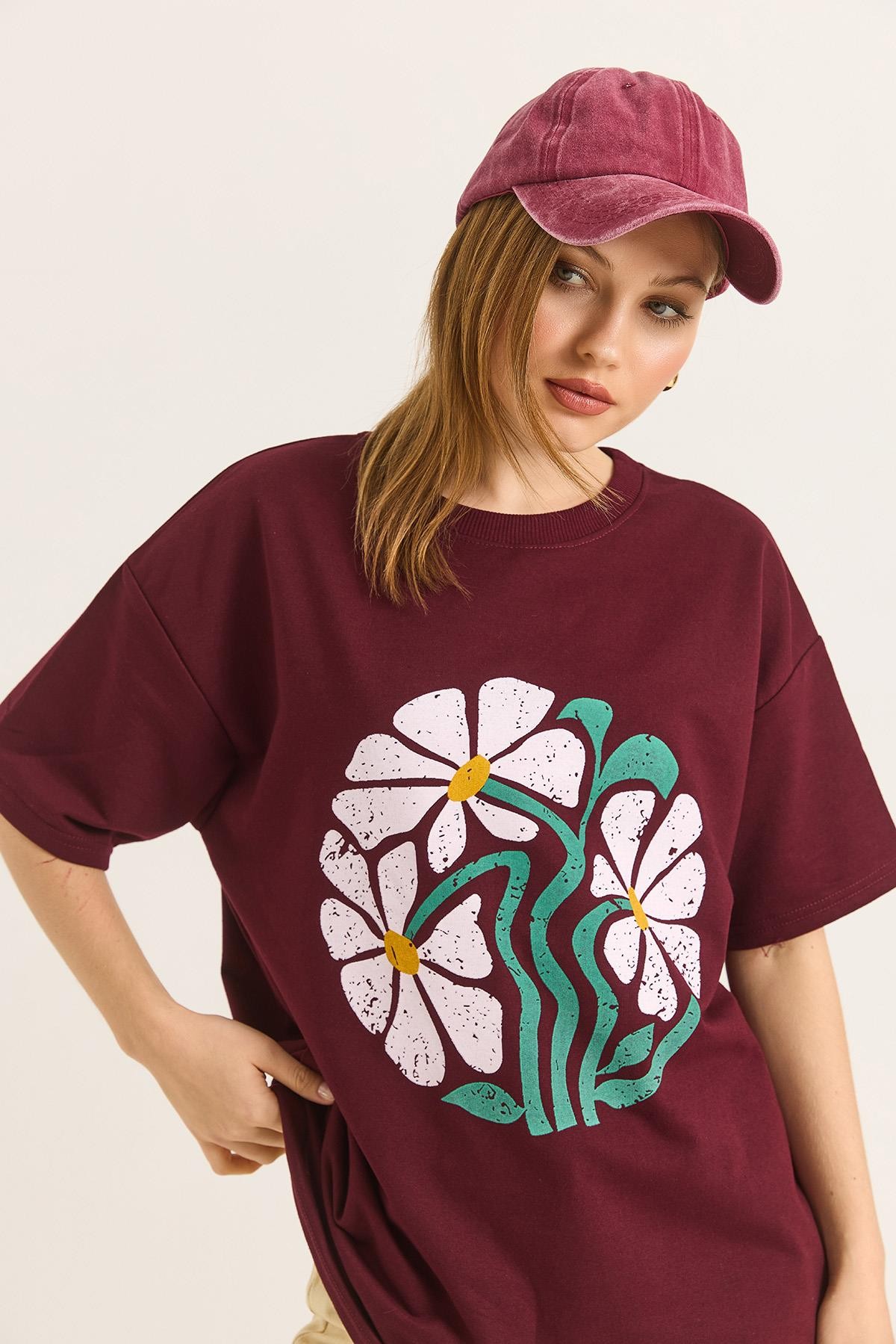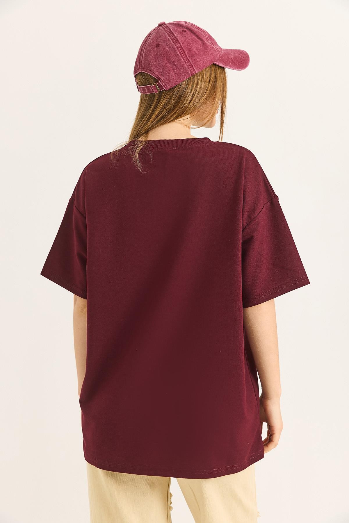 Baskılı Bisiklet Yaka Tshirt Bordo (500131TSHXBRD)
